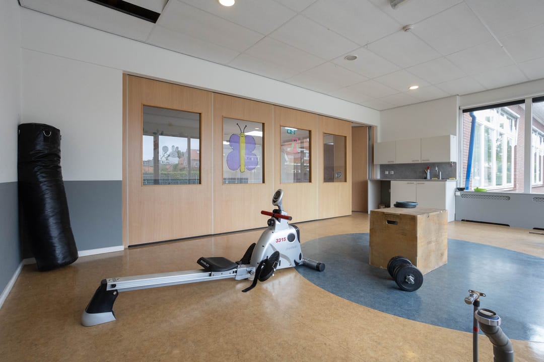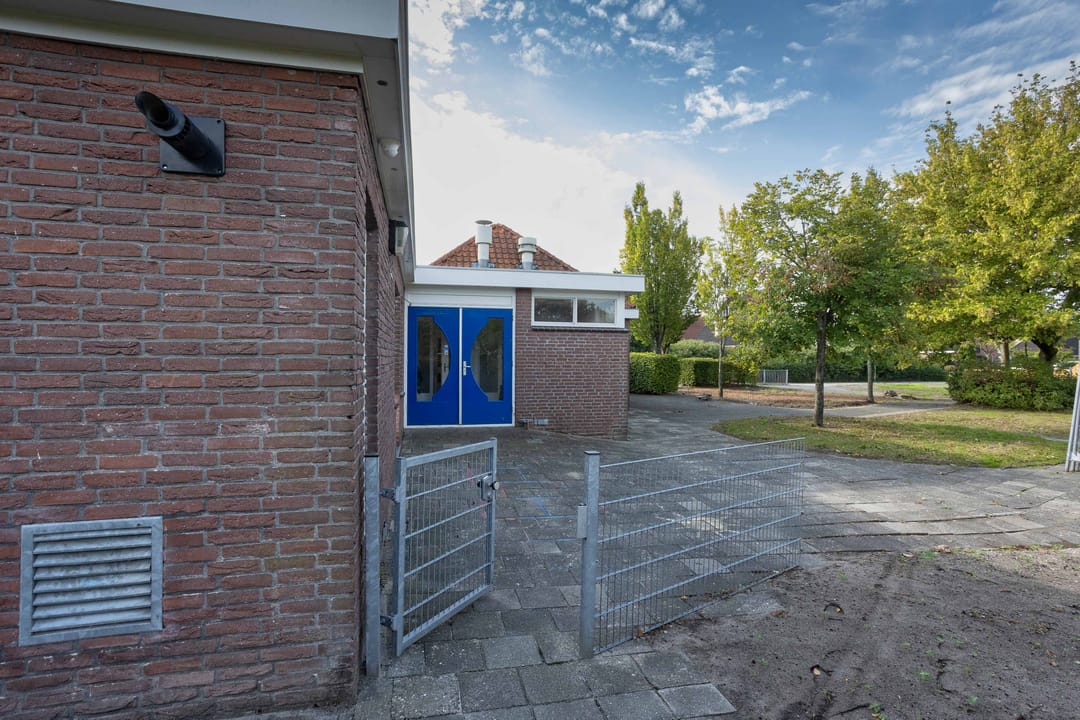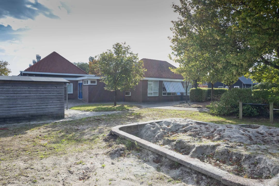 Het eigen terrein is ingericht als schoolplein/speelplaats.
