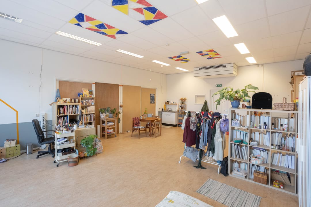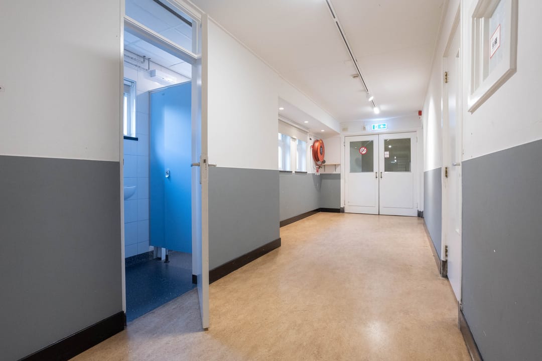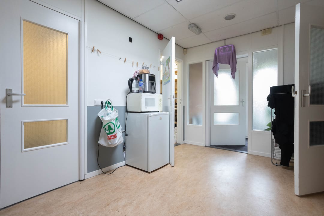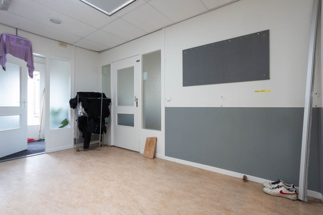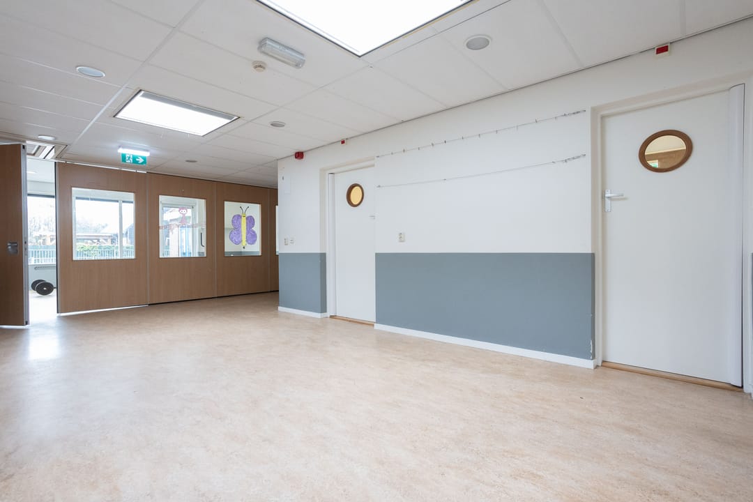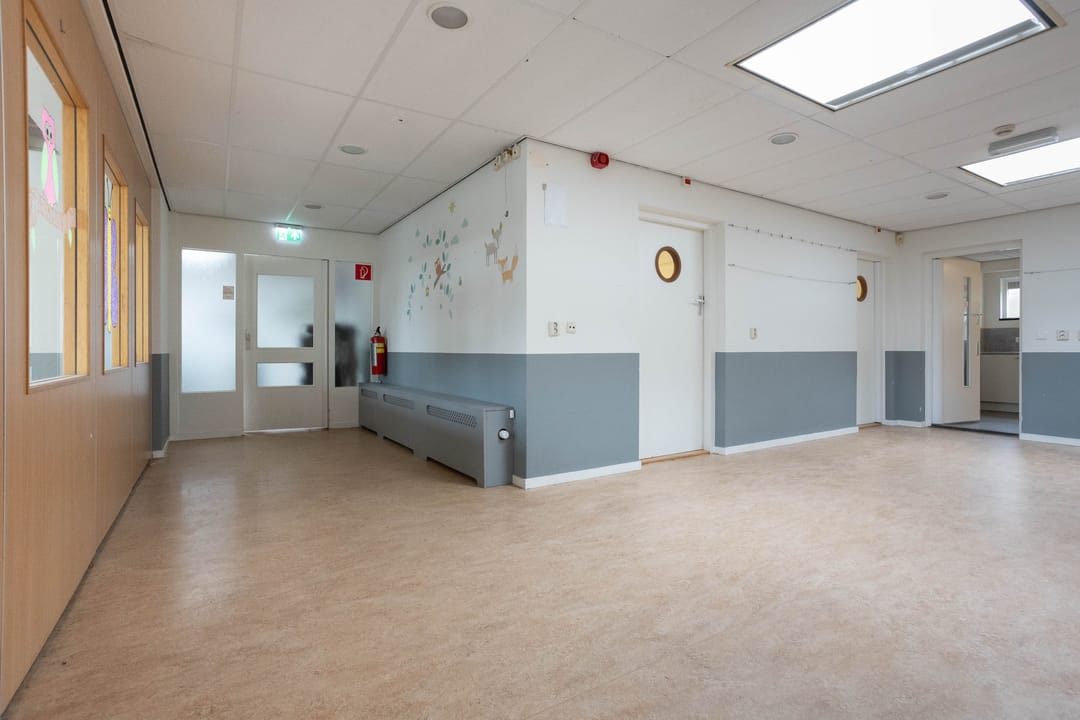 Begane grond: entree, centrale gang, 4 lokalen, gemeenschappelijke ruimte, 3 kantoren, toilet- en wasruimten, berging, achteringang.