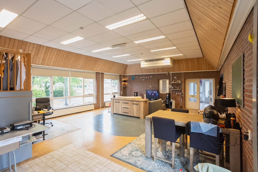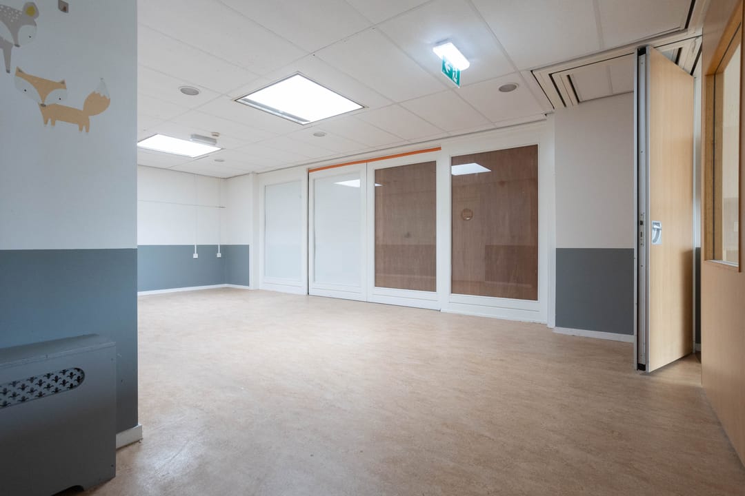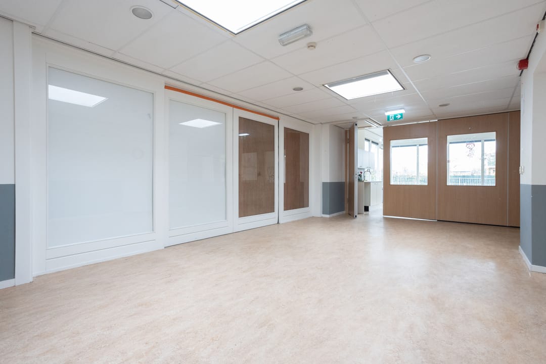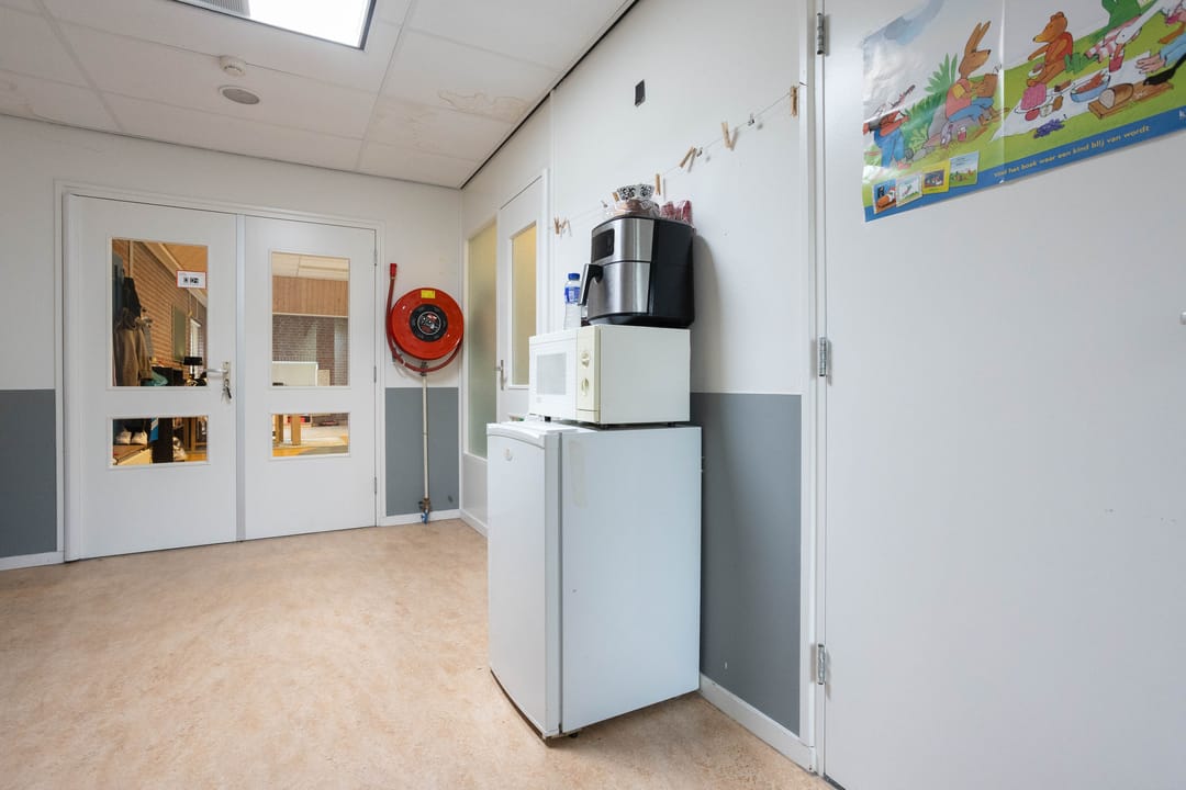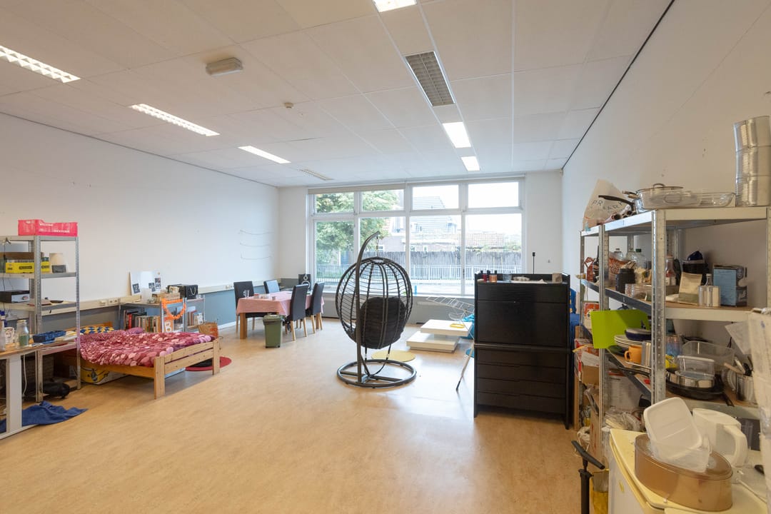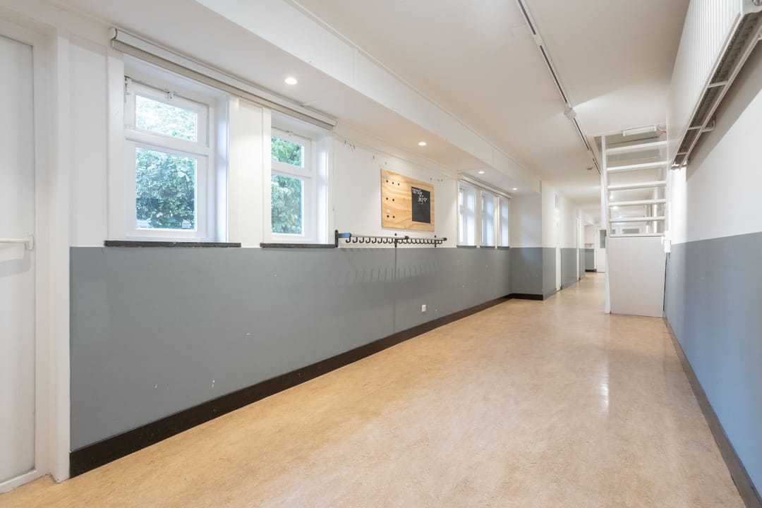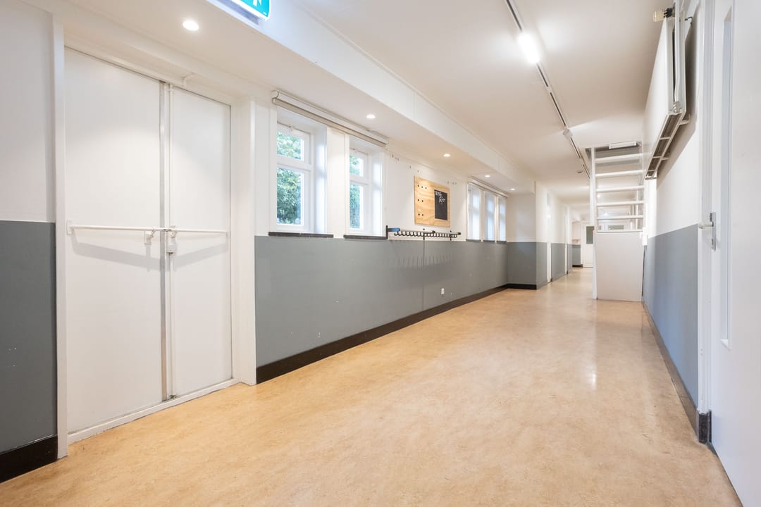 Begane grond: entree, centrale gang, 4 lokalen, gemeenschappelijke ruimte, 3 kantoren, toilet- en wasruimten, berging, achteringang.