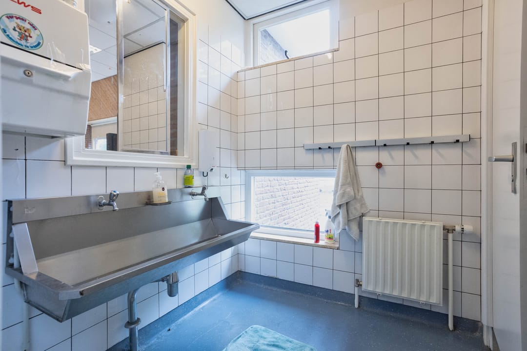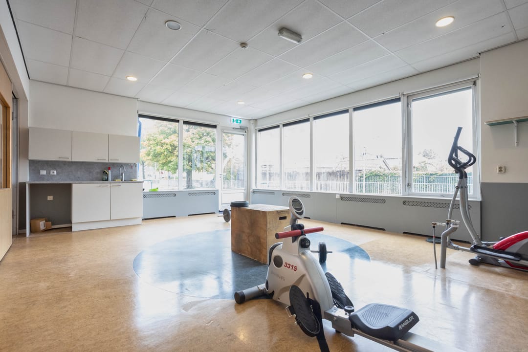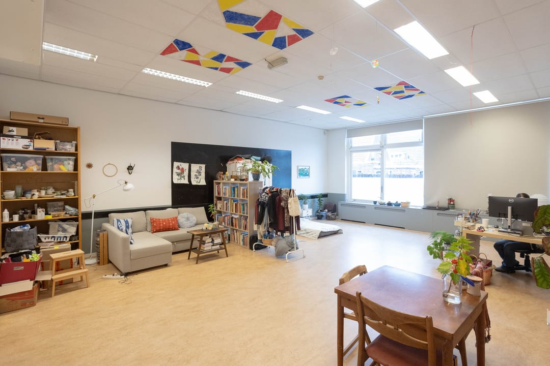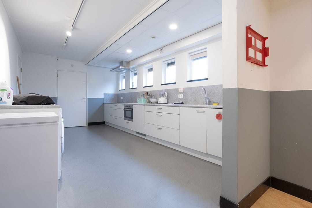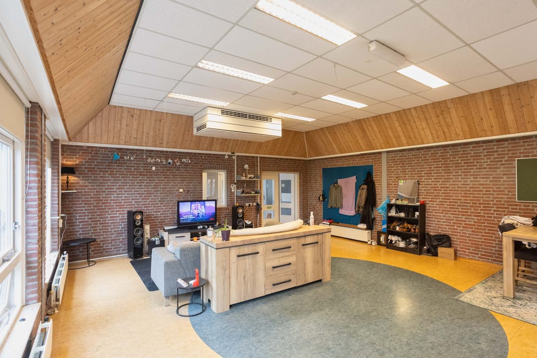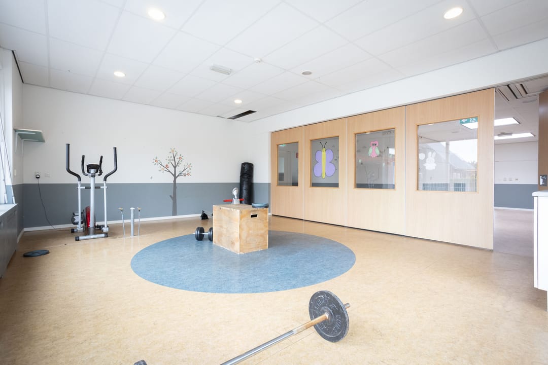 Begane grond: entree, centrale gang, 4 lokalen, gemeenschappelijke ruimte, 3 kantoren, toilet- en wasruimten, berging, achteringang.