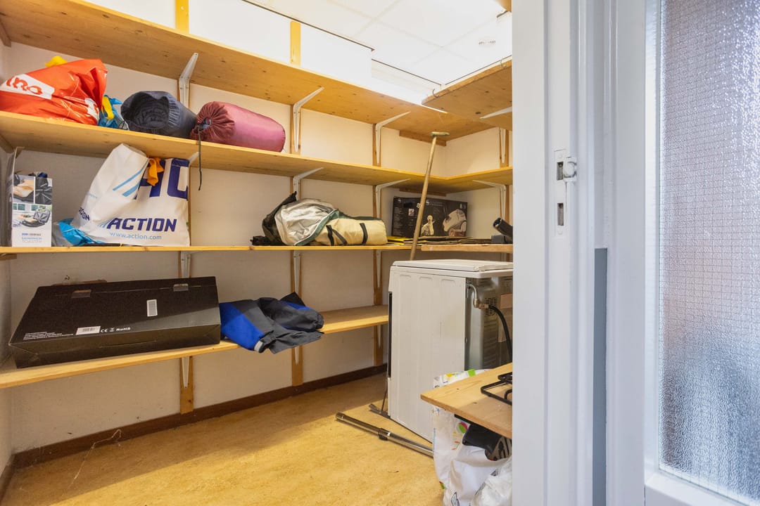 Verdieping: via een vaste trap bereikbare opslag/bergruimten.