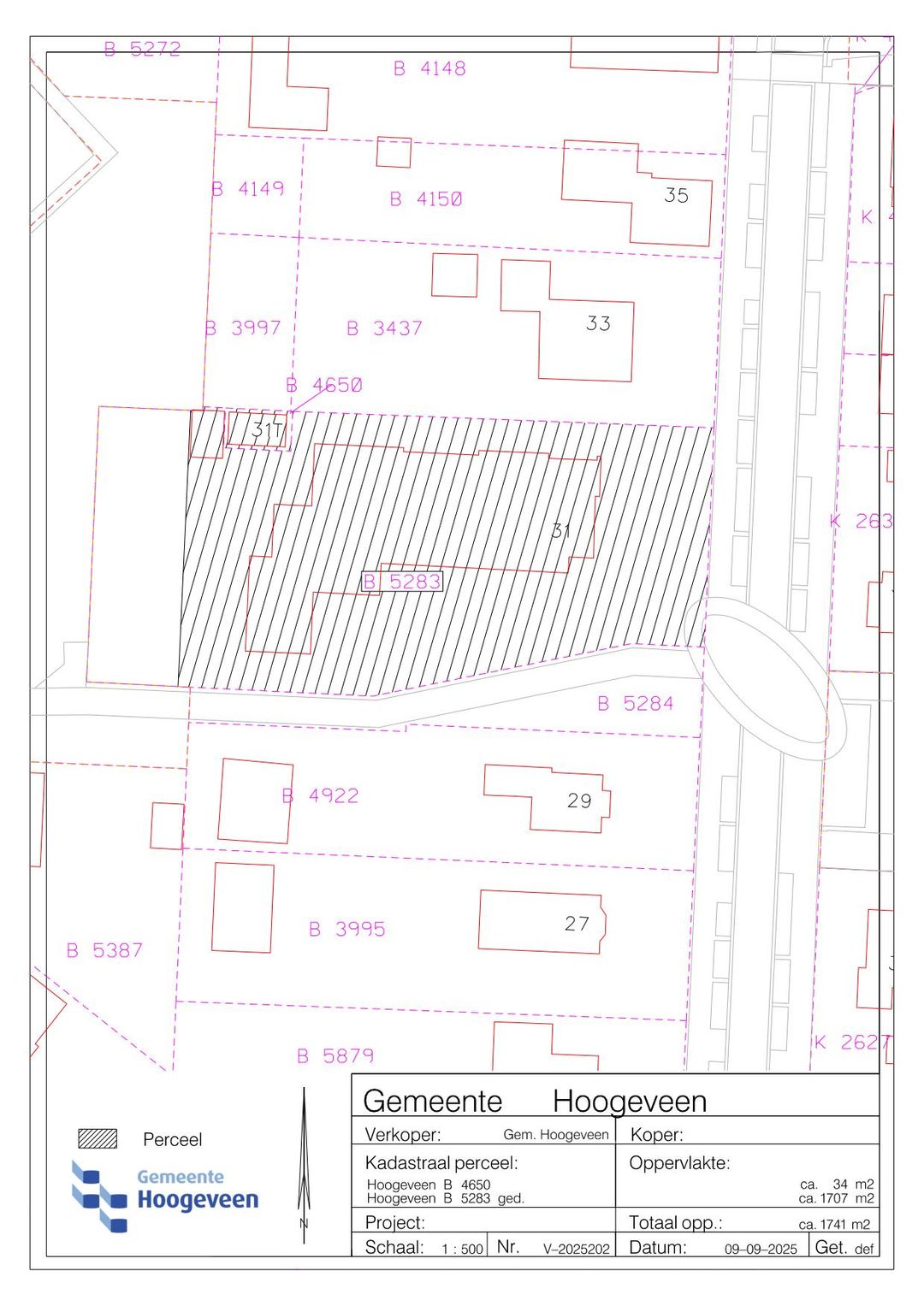 - gemeente Hoogeveen, sectie B, nummer 6167, berekende oppervlakte van 1.704 m² maar deze dient nog definitief te worden vastgesteld door het Kadaster.
