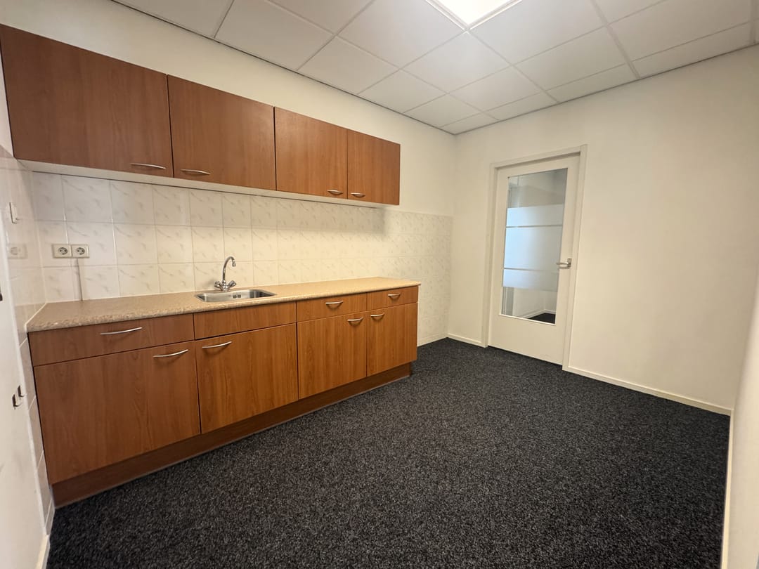 Op de eerste verdieping gelegen een kantoorruimte/praktijkruimte bestaande uit drie kamers, waarvan 2 zeer ruime kamers. Verder zijn er een ruime pantry met een modern keukenblok en een luxueuze toiletgroep met dames en heren toilet aanwezig. In totaal is de bruto oppervlakte circa 120 m².