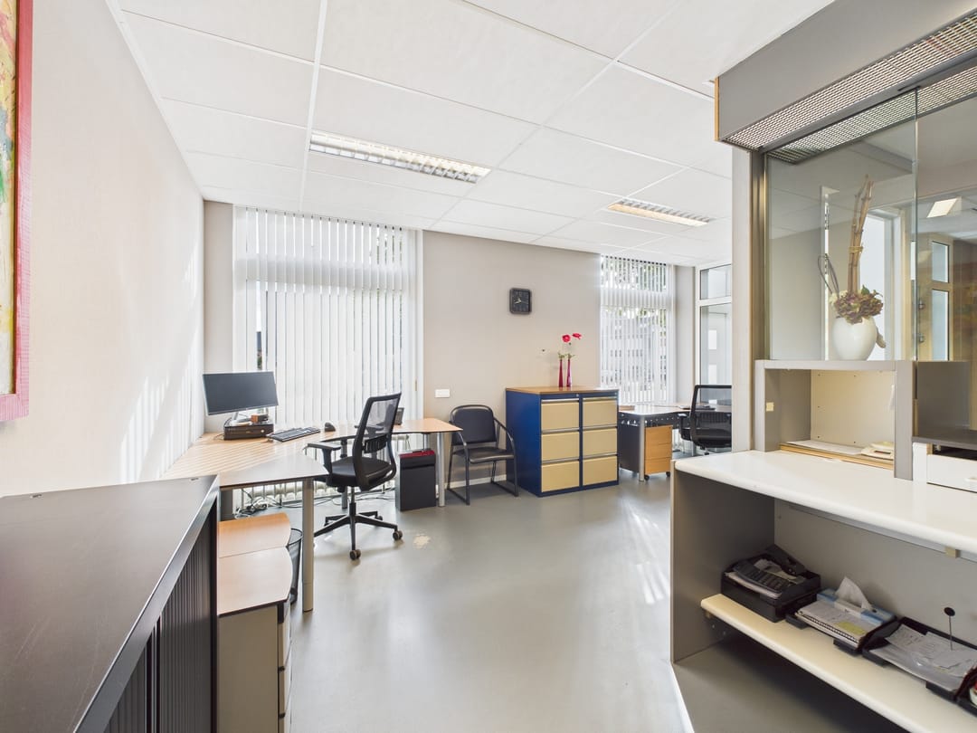 Het pand beschikt over een representatieve ontvangstruimte met balie en keuken, aangrenzende kantoorruimte en aan de achterzijde twee ruime kantoor- of spreekruimtes. Voor bezoekers en medewerkers is er direct bij het pand parkeergelegenheid aanwezig. Met een gebruiksoppervlakte van ca. 103 m² biedt dit pand een prettige en praktische indeling.