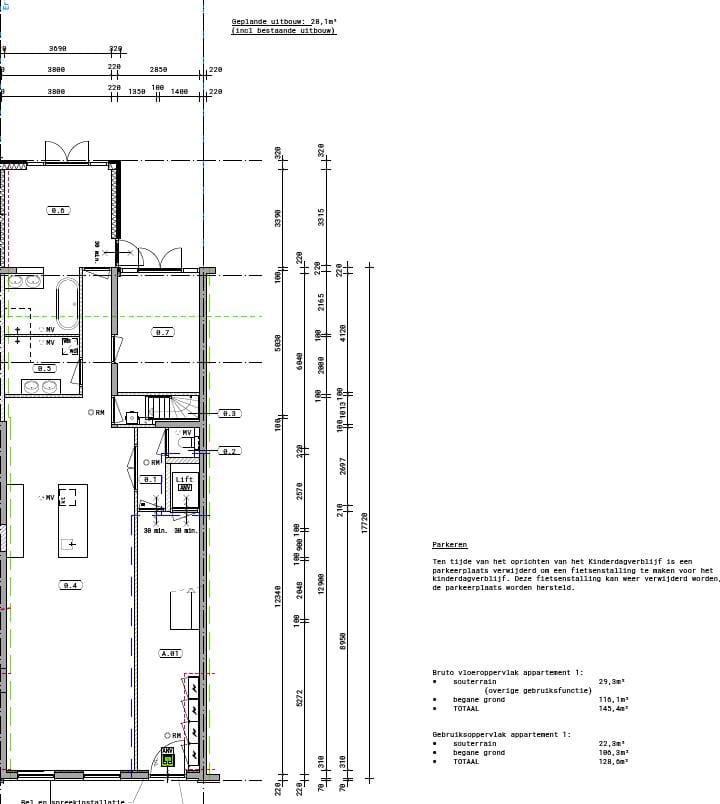 Begane grond ca. 128m2, kelder ca. 22m2 met riante achtertuin !