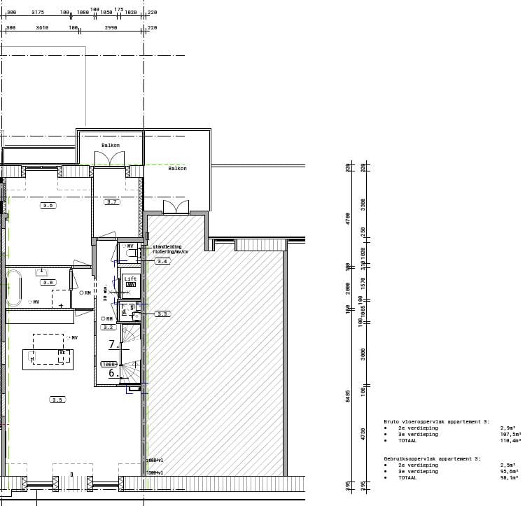 Derde verdieping ca. 98m2 met dakterras ca. 25m2