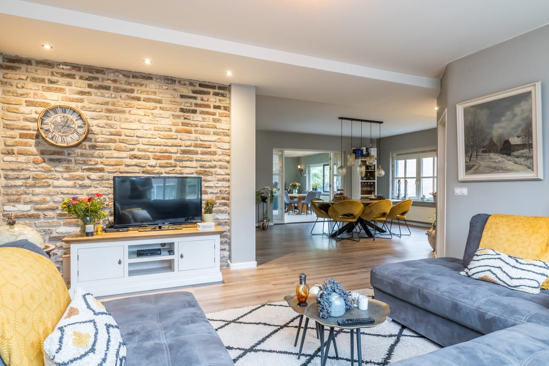 In de Z-vormige woonkamer van zo’n 46 m2 valt het licht aan de voorzijde binnen.