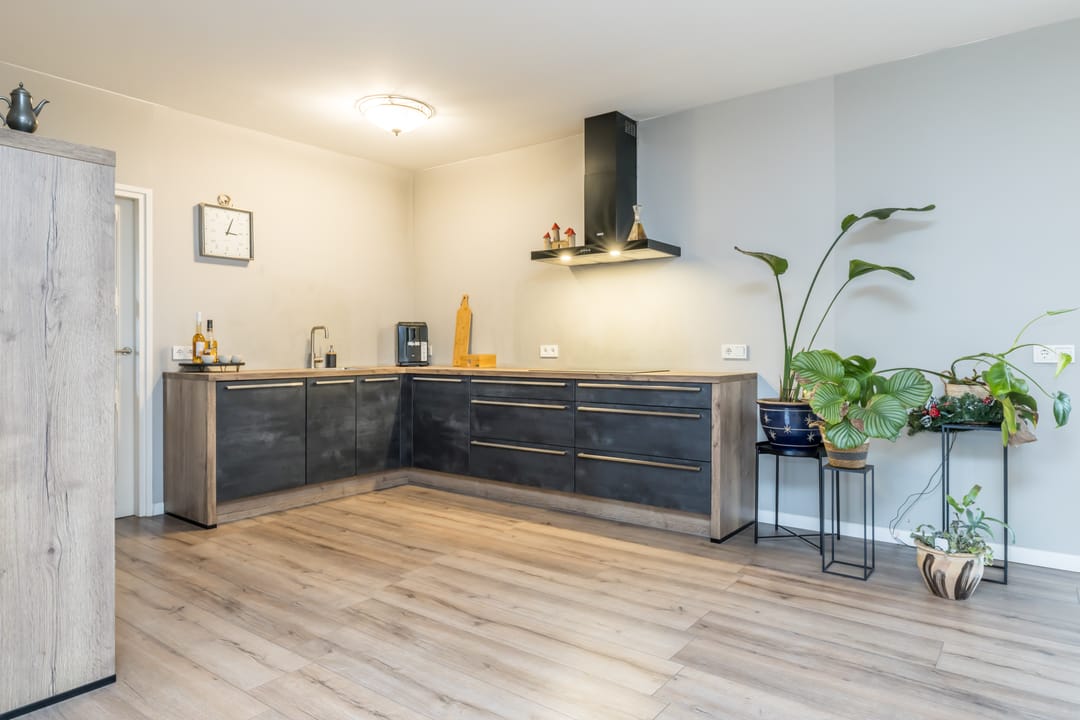 Naast de keuken ligt de bijkeuken met de witgoed aansluitingen en de opstel plaats van de cv ketel met voorraad vat.