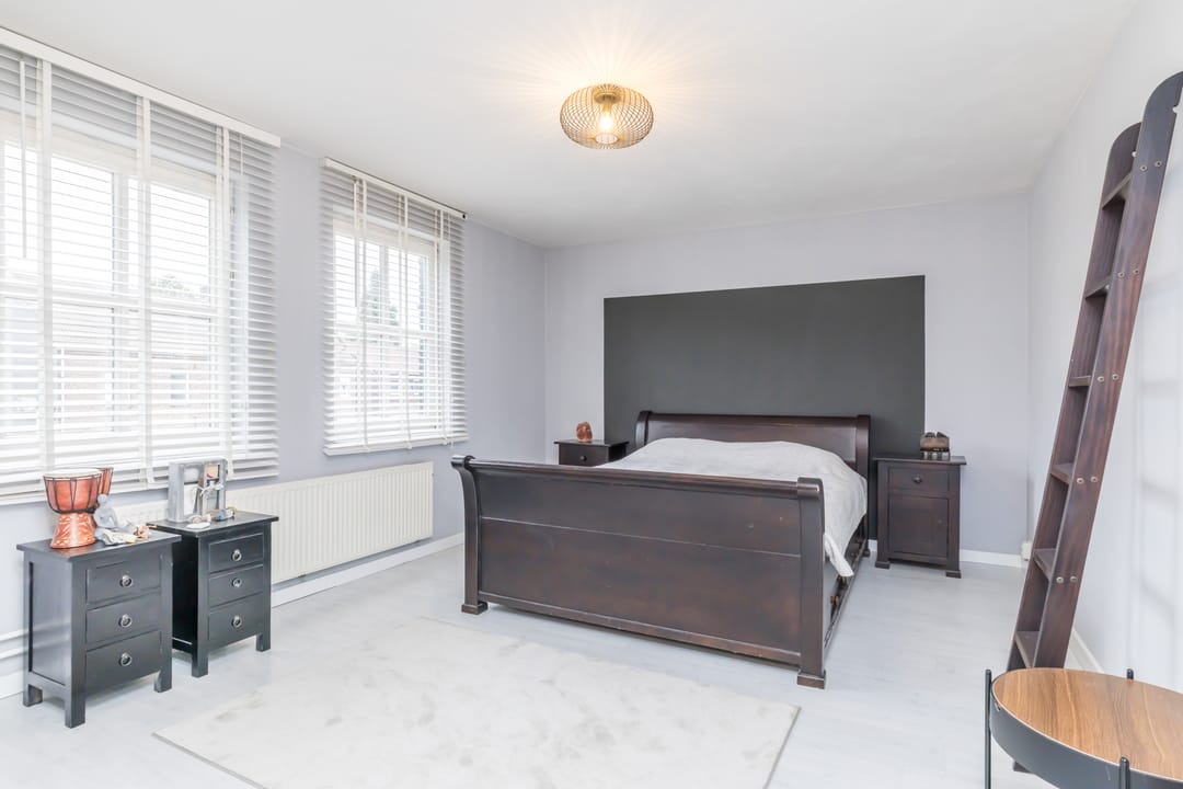 Vanaf de ruime overloop op de eerste verdieping is er toegang tot drie slaapkamers: 1. (3.39 x 6.92m) welke eenvoudig is op te delen in twee slaapkamers, 2. (3.57 x 4.71m) en 3. (2.46/1.85 x 2.43m). Er is een afgesloten trapopgang richting de zolderverdieping en een ruime muurkast aan het eind van de gang. De complete badkamer is voorzien van een ligbad, een douchecabine, een tweede zwevend closet en twee wastafels.