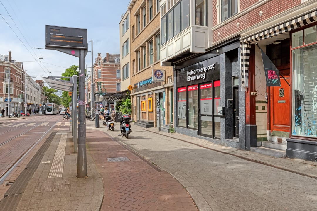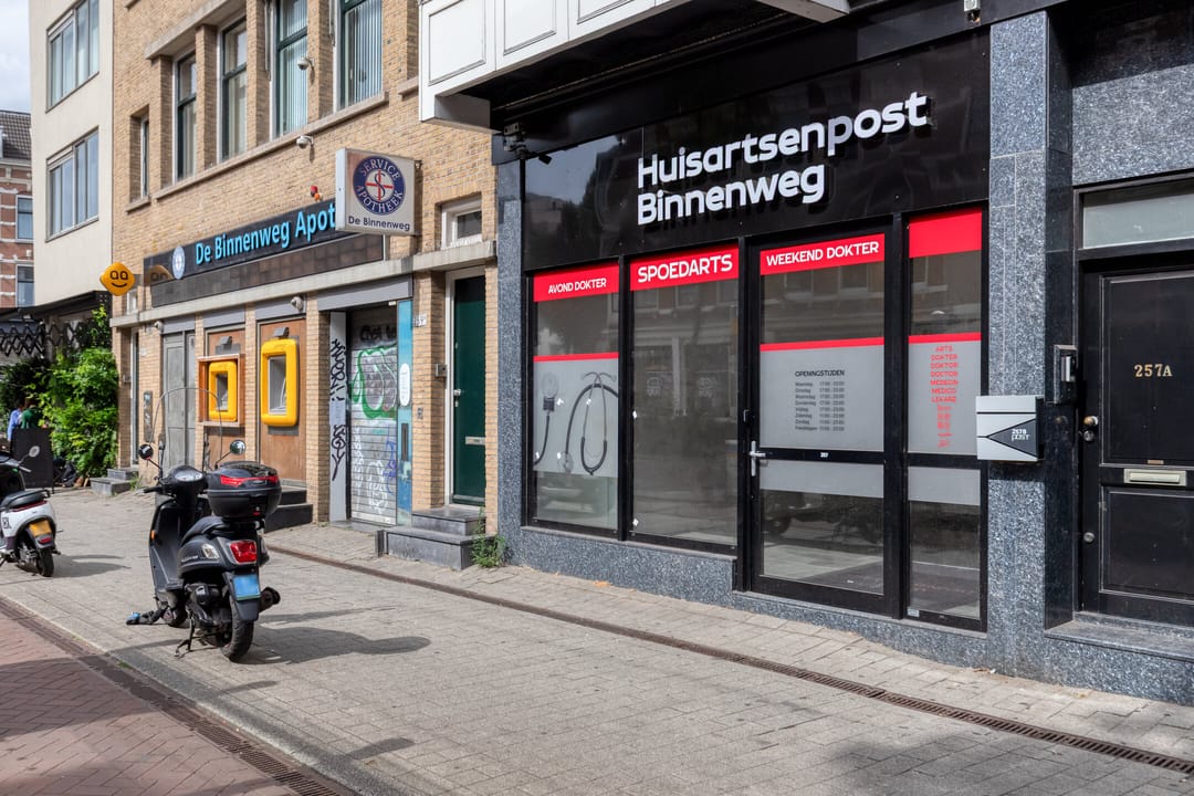Aan de bruisende Nieuwe Binnenweg, een van de meest levendige en karakteristieke straten van Rotterdam, bevindt zich deze recent verbouwde en volledig ingerichte praktijkruimte. Het pand kent een duidelijke historie als zorglocatie: pasgeleden was hier al een huisartsenpraktijk gevestigd. Dat maakt deze locatie niet alleen praktisch en functioneel, maar geeft ook vertrouwen aan cliënten die de plek al kennen als vaste medische bestemming. Met een gebruiksoppervlakte van circa 129 m² en een moderne afwerking is dit de ideale plek voor zorgverleners die op zoek zijn naar een representatieve en instapklare locatie. De ruimte leent zich uitstekend voor huisartsen, fysiotherapeuten, chiropractors en andere (para)medische disciplines die hun cliënten een professionele en toegankelijke omgeving willen bieden.