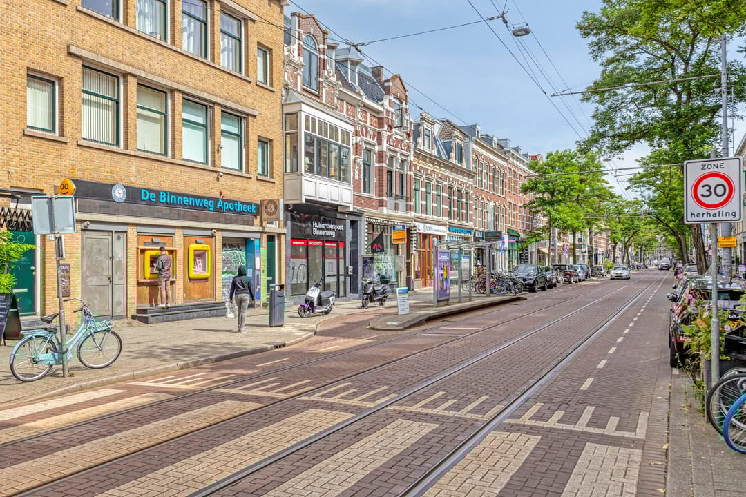 De ligging aan de Nieuwe Binnenweg garandeert niet alleen een hoge mate van zichtbaarheid, maar ook optimale bereikbaarheid. De straat staat bekend om haar mix van wonen, werken en voorzieningen, met een breed scala aan winkels, horeca en zorgaanbieders in de directe omgeving. Daarnaast bevindt zich een apotheek direct naast de praktijk, wat een belangrijk voordeel vormt voor huisartsen en andere medische professionals. Zowel met de auto als met het openbaar vervoer is de locatie uitstekend bereikbaar; tram- en metrohaltes liggen op loopafstand, waardoor cliënten en medewerkers de praktijk moeiteloos kunnen bezoeken.