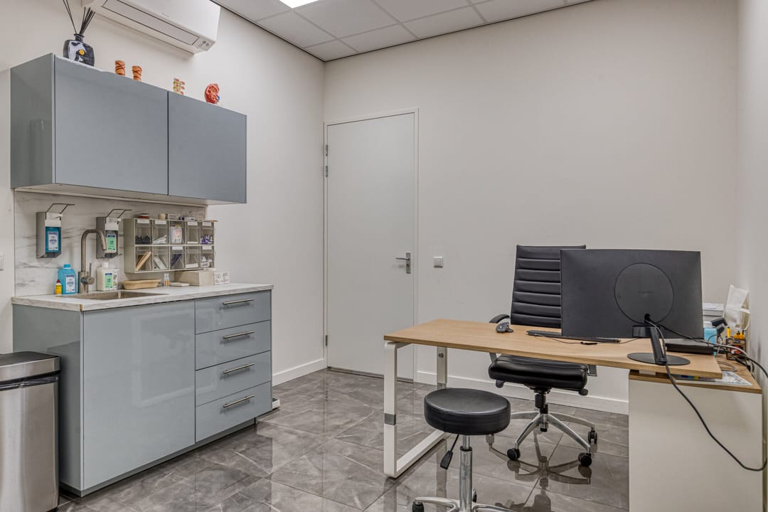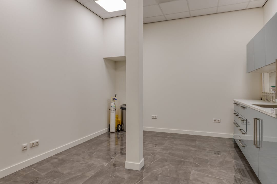 Het pand is slechts enkele maanden geleden volledig verbouwd en verkeert in turn-key staat. Bij binnenkomst treft u een representatieve entree met balie en wachtruimte die vertrouwen en professionaliteit uitstraalt. De achterliggende ruimten zijn ingericht als behandelkamers en kantoren, waarbij iedere ruimte is voorzien van een eigen keukenblok en hoogwaardige afwerking. Daarnaast zijn de verschillende vertrekken uitgerust met airco’s, wat bijdraagt aan een optimaal binnenklimaat voor zowel zorgverleners als cliënten. Deze indeling maakt het mogelijk om efficiënt te werken, terwijl het comfort voor zowel zorgverlener als cliënt centraal staat. Naast de behandelruimten beschikt het pand over een moderne pantry en kantine, praktische bergruimtes en keurig afgewerkte sanitaire voorzieningen.
