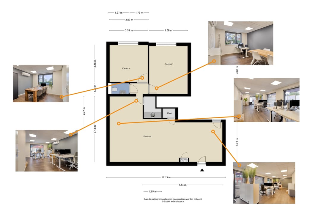 Het object wordt in zijn geheel aangeboden met een totale oppervlakte van ca. 85 m², maar er is ook de mogelijkheid om de ruimte te delen met een tweede huurder. In dat geval bedraagt het beschikbare oppervlak ca. 48 m², waardoor dit object ook geschikt is voor ondernemers die een compacte werkplek zoeken met gedeelde faciliteiten.