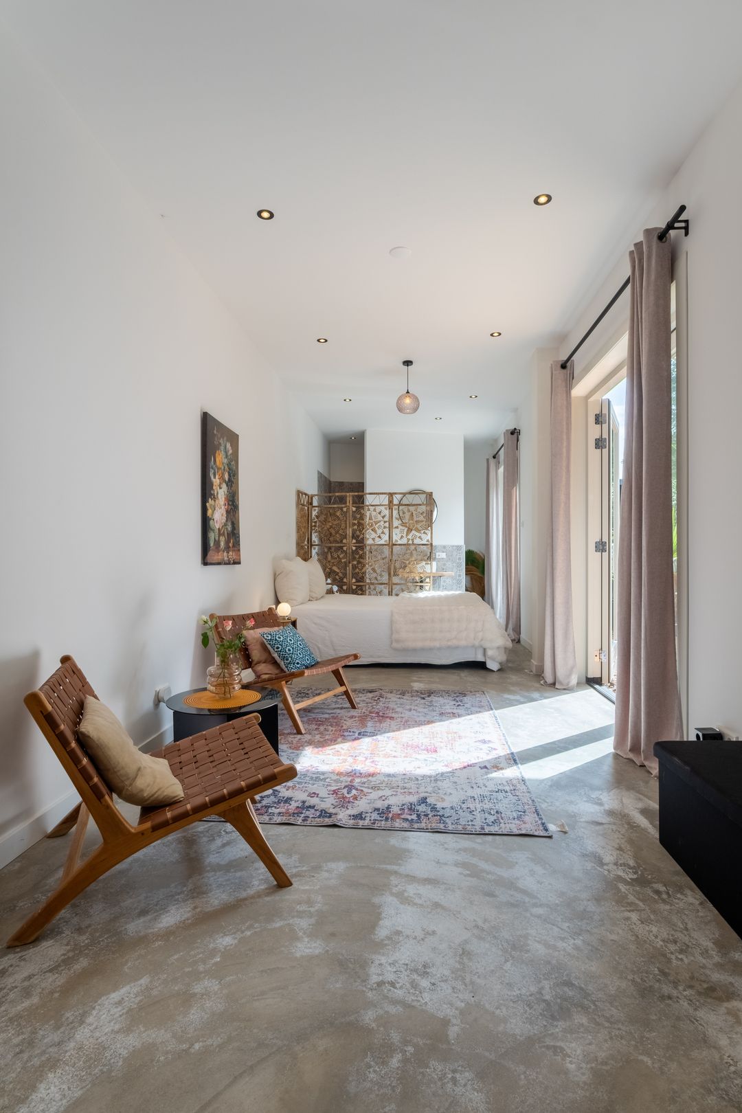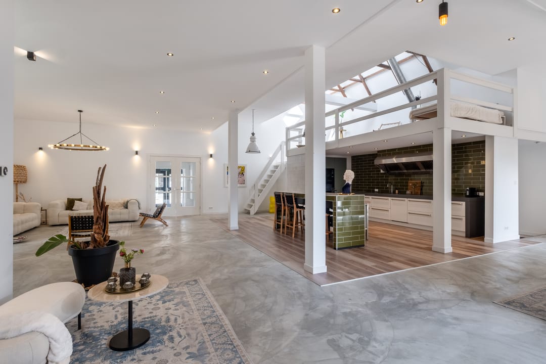 De open living is ontworpen om licht en lucht maximaal binnen te laten. Hoge plafonds, de Balinese courtyard en de optimale verbinding tussen binnen en buiten creëren een loft-achtige sfeer. De achtertuin biedt volledige privacy, groen en meerdere hoekjes om in alle rust te ontspannen.