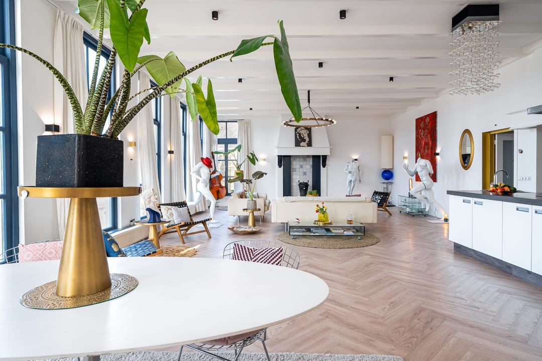 Soms kom je een woning tegen die meteen indruk maakt. Kaatsplein 7 in Witmarsum is zo’n plek. Dit voormalige zalencentrum is onder architectuur van Lautenbag volledig gerenoveerd in 2022/2023 en getransformeerd tot een moderne, luxe woning met 286 m² woonoppervlak en energielabel A+. Alles is gelijkvloers en daardoor volledig levensloopbestendig, wat dit object uniek maakt. Hoge plafonds, een Balinese binnenplaats en een open living geven het geheel de uitstraling van een loft, waar licht, ruimte en comfort centraal staan.