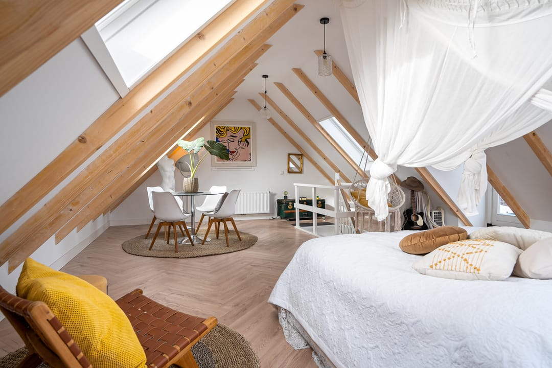 De tweede verdieping verrast opnieuw. Het dak is recent vernieuwd (2022/23) en biedt plaats aan een riante slaapkamer met toegang tot een eigen dakterras – een heerlijke plek om in alle rust van de zon te genieten. In totaal telt de woning vier royale slaapkamers, waardoor het wooncomfort optimaal is.