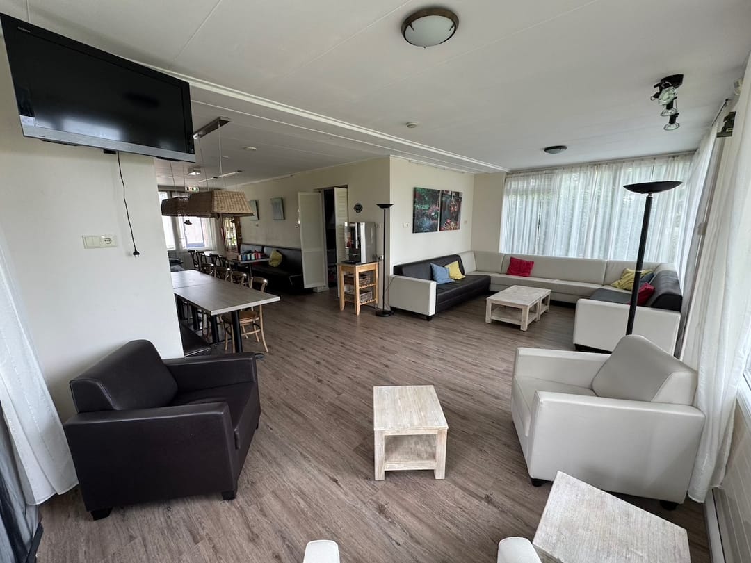 Recreatieve voorzieningen, bestaande uit: In de groepsaccommodatie bevindt zich een verblijfsruimte (circa 60 m²) met een eet- en een zitgedeelte. Hier zijn een onder andere een TV, radio, dvd-speler en spelletjes beschikbaar