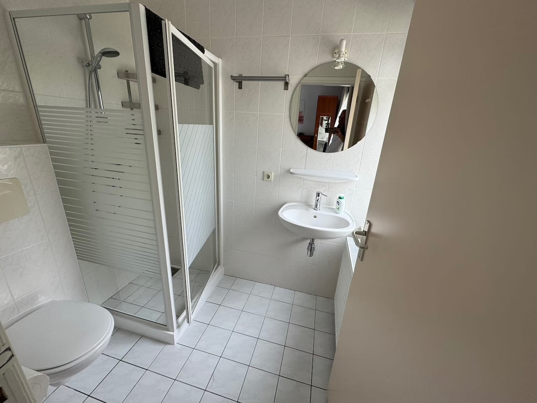 Overloop, 2 slaapkamers met eigen sanitair (douche, toilet en wastafel), toilet en bergruimte.