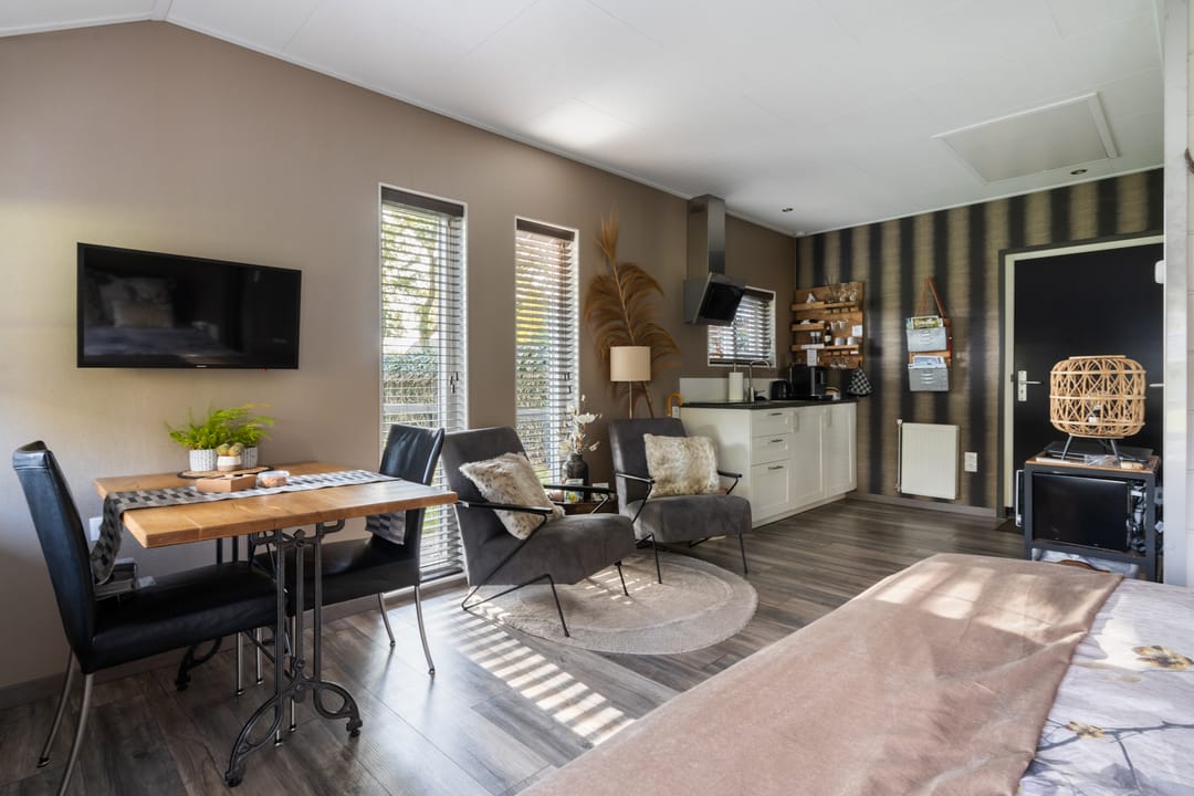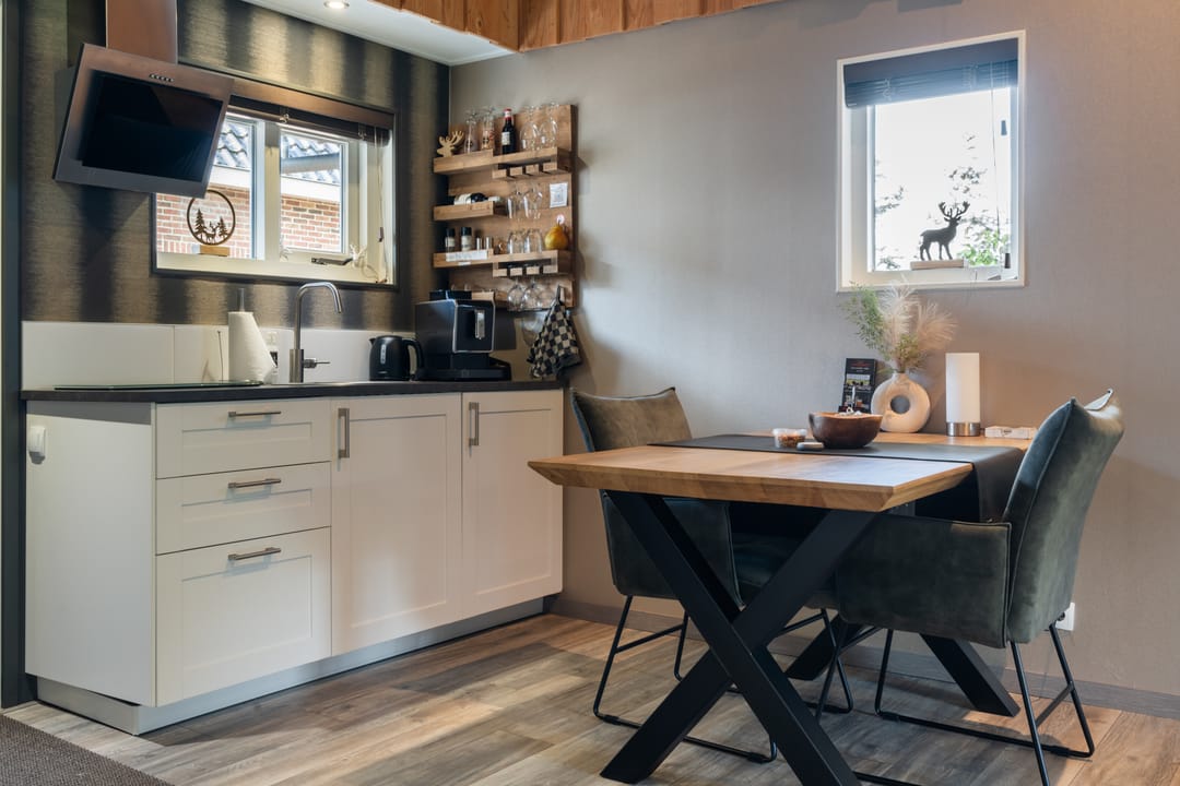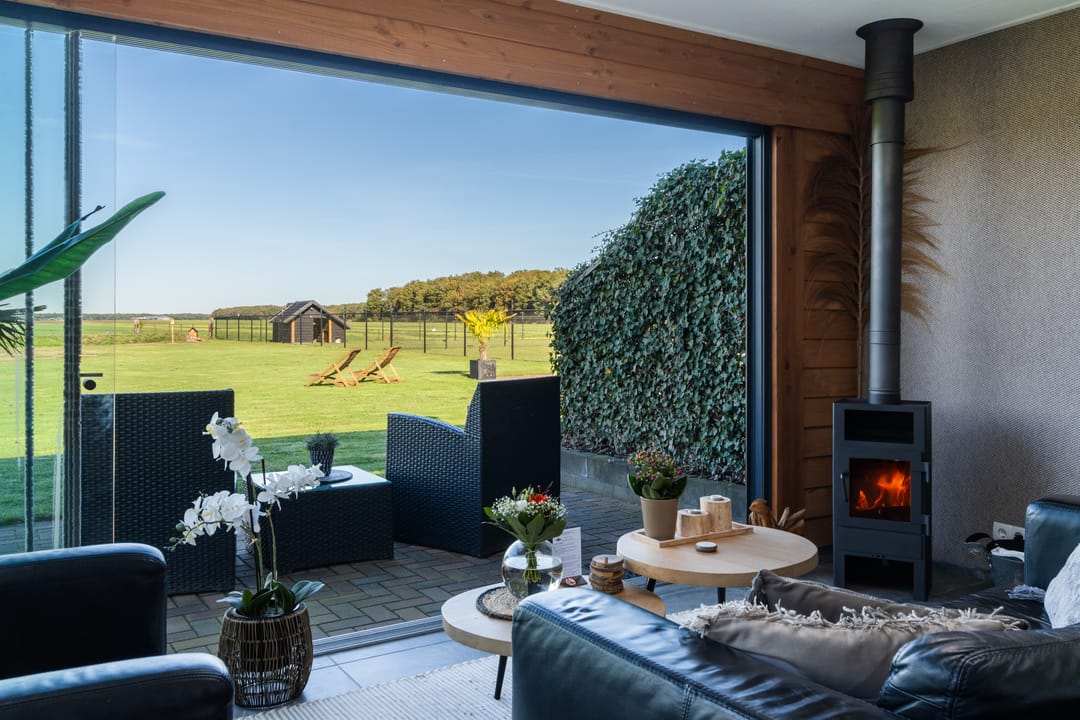 De luxe accommodaties zijn allemaal gelijkvloers en zeer geschikt voor een langer verblijf. Eigenlijk zijn het compleet ingerichte natuurhuisjes in een landelijke omgeving. Vanuit uw accommodatie loopt u zo naar buiten en neemt u plaats op uw eigen terras, met zicht op de alpaca’s en herten. Ondertussen kunt uw middels een laadpaal uw auto en/of fiets opladen.