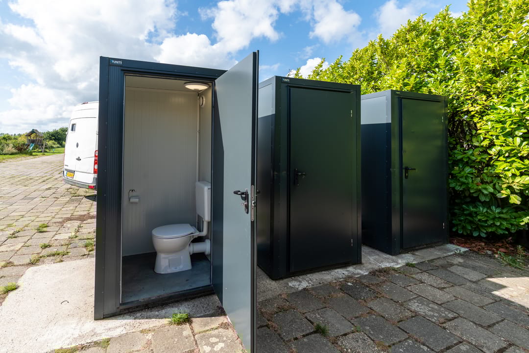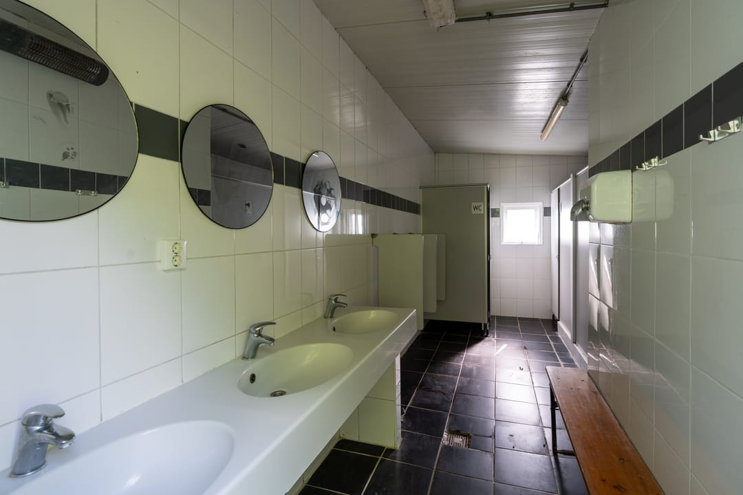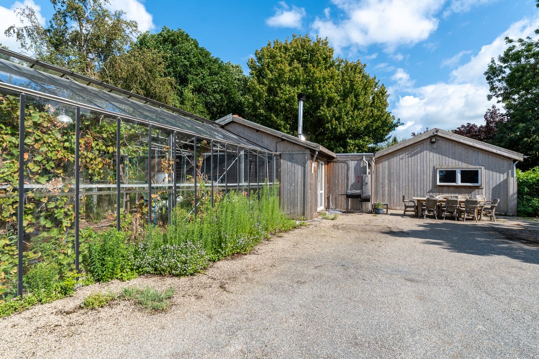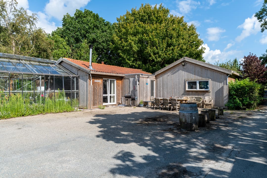 • Centrum-, sanitairgebouw en een kas.