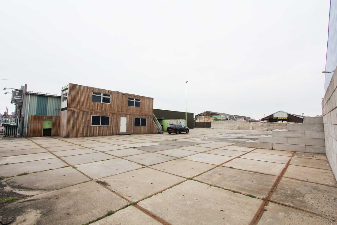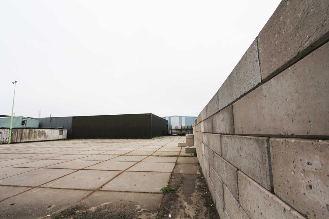 Verhard buitenterrein, omheind en met een afsluitbaar hek aan doorgaande weg.