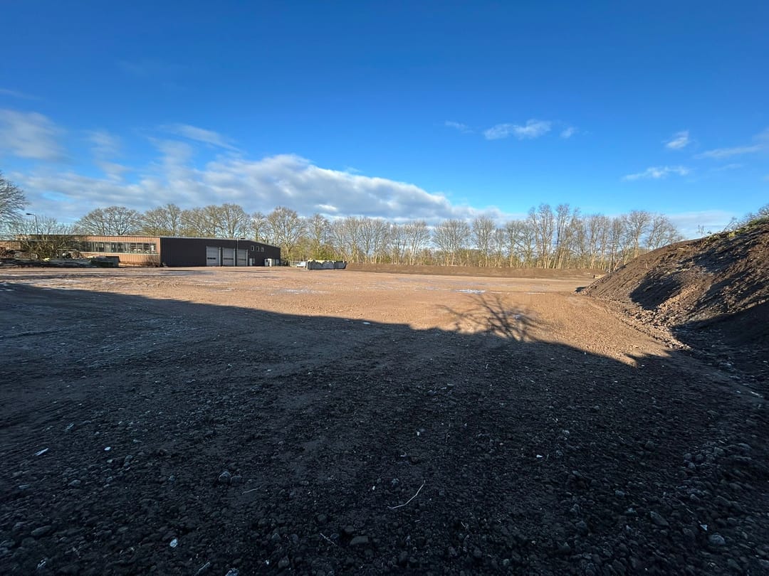 Te huur een buitenterrein van circa 10.000 m2 (Brinkweg 36B) verhard middels granulaat en voorzien van een weegbrug.