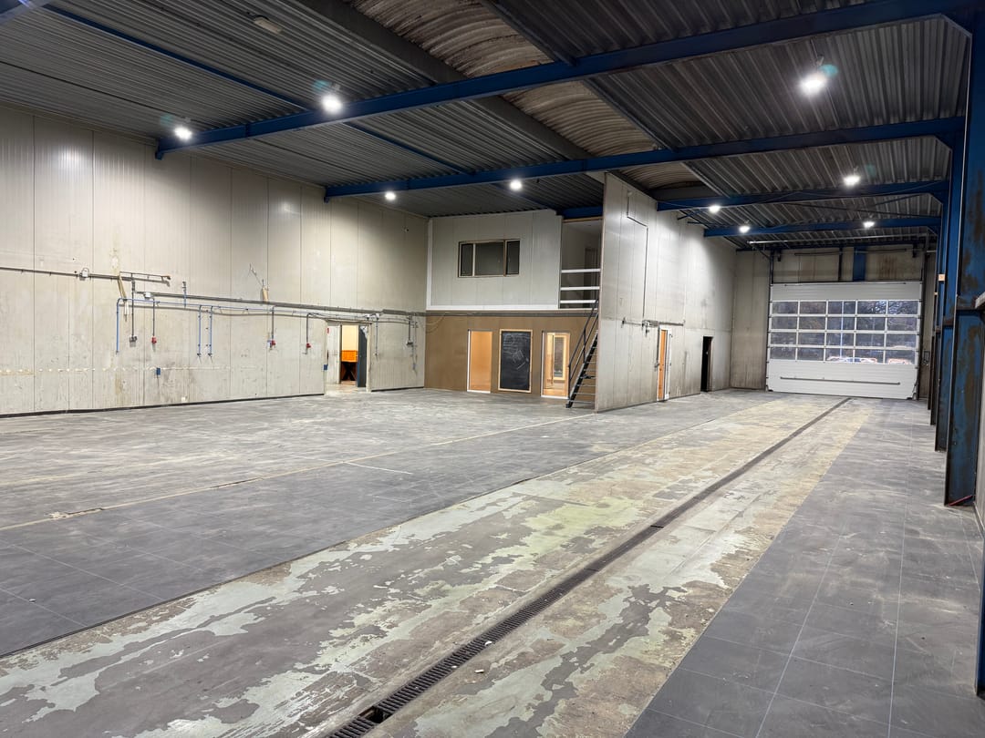 Vrijstaande bedrijfshal van circa 750 m² + circa 150 m2 verdieping met representatieve kantoor- en showroomruimten voorzien van airconditioning. De hal biedt extra mogelijkheden voor werkplaats, opslag en showroomfunctie, met een groot verhard buitenterrein. Een functionele, goed bereikbare locatie met zicht vanaf de doorgaande weg, ideaal voor bedrijven die een combinatie van werk- en presentatieruimte zoeken.