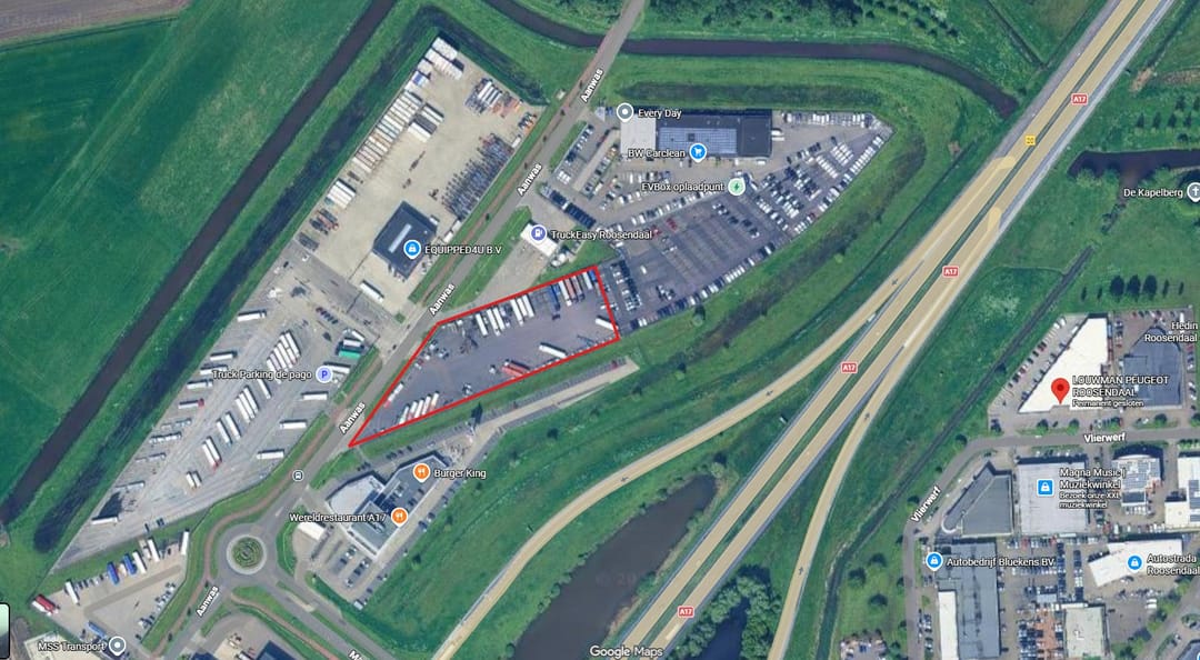 Direct aan de snelweg A17 (Rotterdam-Antwerpen) bij Roosendaal (afslag 20 Borchwerf) bieden wij een groot, geasfalteerd terrein Te Huur aan. Ligging direct naast de Burger King.