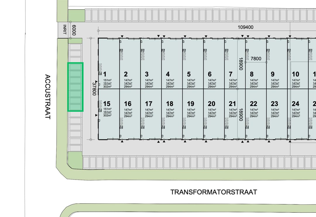 Het gaat om 14 parkeerplekken, welke direct naast de ingang van het nieuwbouwproject zijn gelegen, wat het ook interessant maakt wanneer u een unit op een ander gedeelte op bedrijventerrein Nijverkamp hebt.