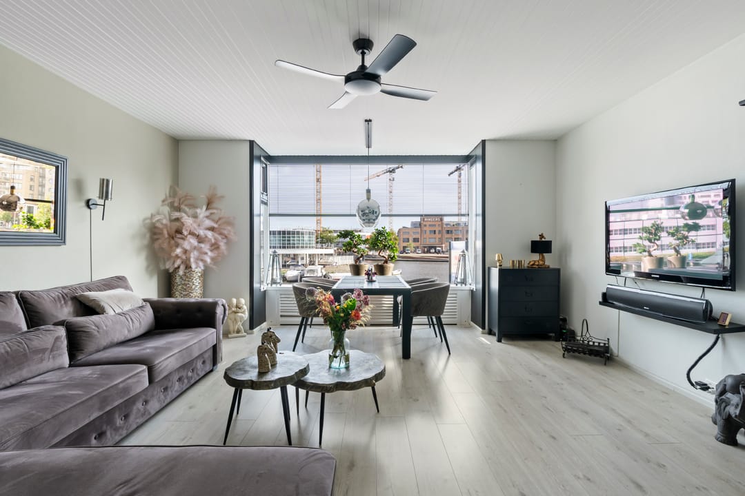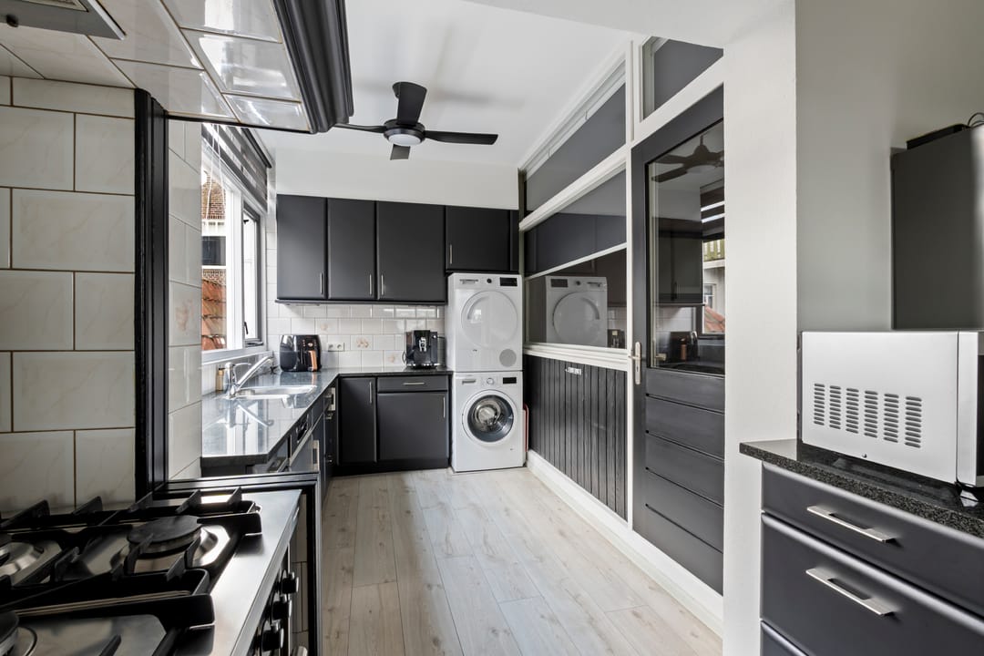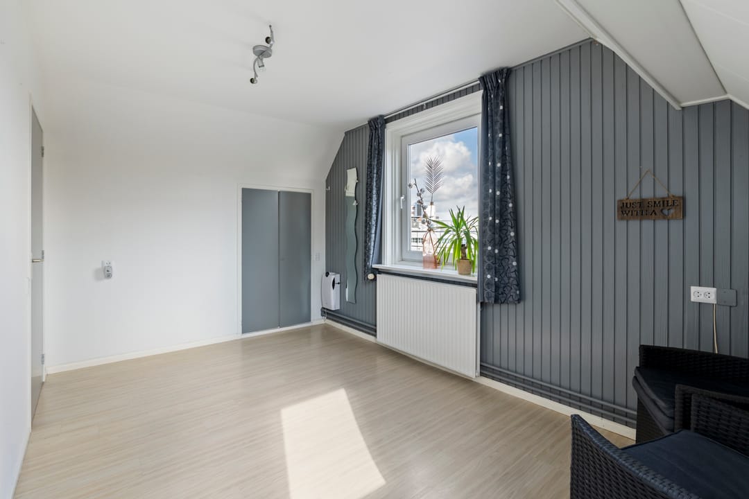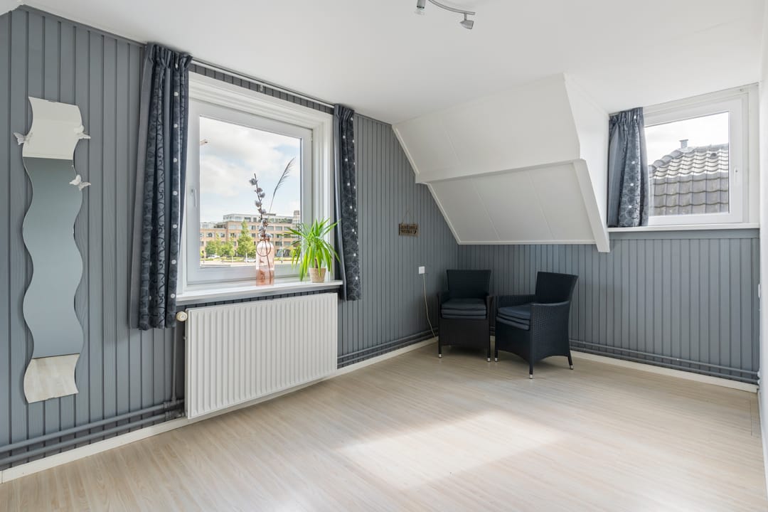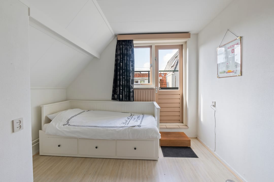De bovenwoning is gelegen aan het kanaal, wat zorgt voor een prachtig uitzicht en een rustige sfeer, ondanks de centrale locatie. De woning beschikt over een ruime woonkamer met erker, vanwaar u uitkijkt over het kanaal en de omliggende straten. De half-open keuken aan de achterzijde is voorzien van inbouwapparatuur en de multifunctionele ruimte kan worden gebruikt als slaapkamer, kantoor of hobbyruimte. Op de eerste verdieping bevinden zich een toilet en een voormalige badkamer, die momenteel dient als bergruimte/inloopkast, maar die eenvoudig omgebouwd kan worden tot een tweede badkamer (in de foto's van dit object is een artist impression opgenomen van de nieuw aan te leggen 2e badkamer).