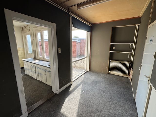 Royale winkel-/bergruimte, tussenportaal, keuken, toiletruimte.