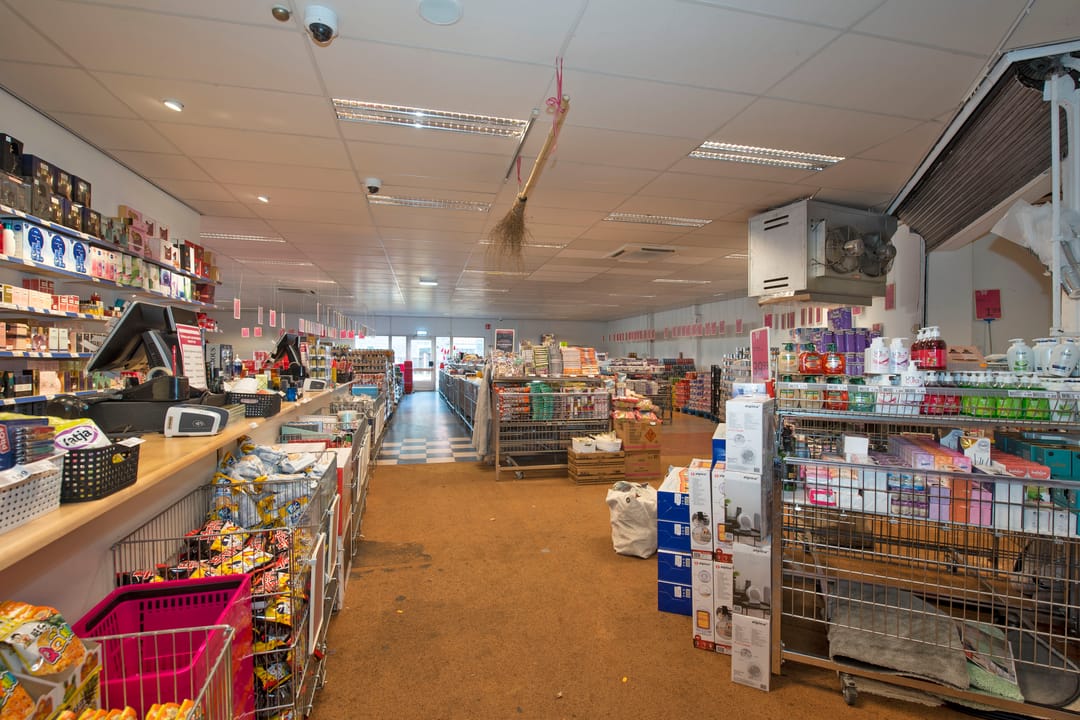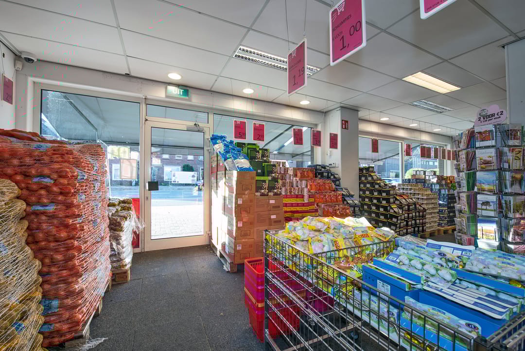 De winkelruimte is gelegen aan de drukke Schoolstraat in de wijk Ossenkoppelerhoek en in een gebied met een mix van detailhandel, dienstverlening en woonfuncties.