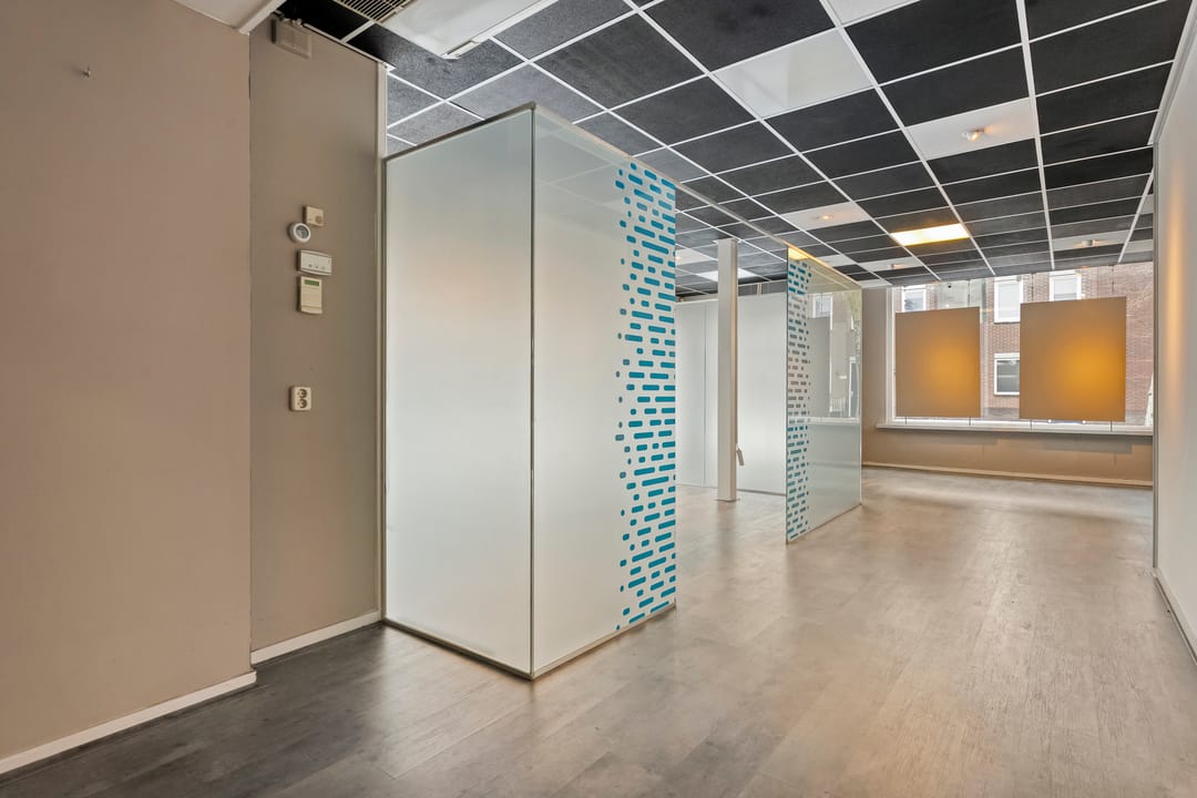 Het pand beschikt over een opvallende en representatieve voorpui met hoge raampartijen, wat zorgt voor veel daglicht en een open uitstraling richting de straat. In de ruimte zijn reeds diverse wanden aanwezig, waardoor het object direct geschikt is als kantoorruimte, vergaderruimte of praktijkruimte.