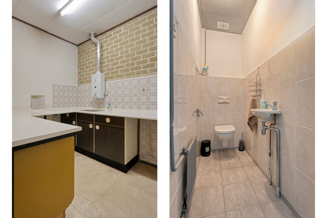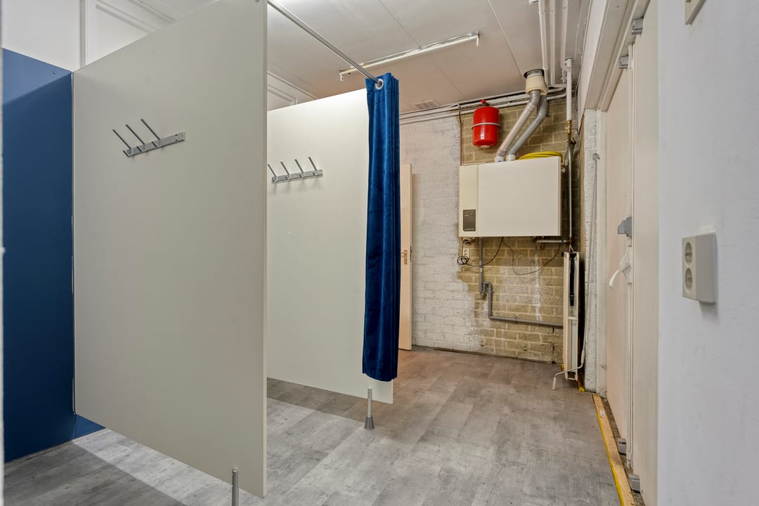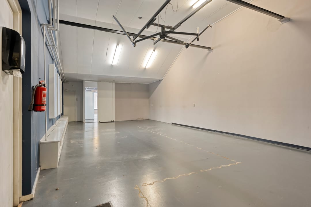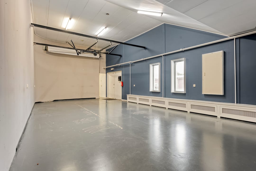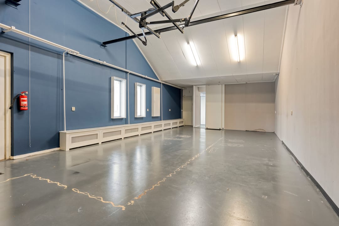 Aan de achterzijde bevindt zich een ruime multifunctionele ruimte met een hoogte van ruim 4 meter. Deze ruimte leent zich uitstekend fitnesszaal, workshop ruimte of andere bedrijfsdoeleinden. Het pand is tevens bereikbaar via de achterzijde middels openslaande deuren, wat het laden en lossen vergemakkelijkt. Vanuit deze zijde is tevens toegang tot de keuken, waar zich ook de cv-installatie en het toilet bevinden.