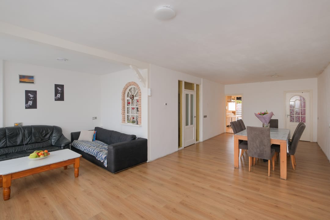 Indeling: ruime woonkamer, eenvoudige keuken, badkamer, toilet en maar liefst vier slaapkamers, waarvan 1 op de 1e verdieping en 3 op de 2e verdieping