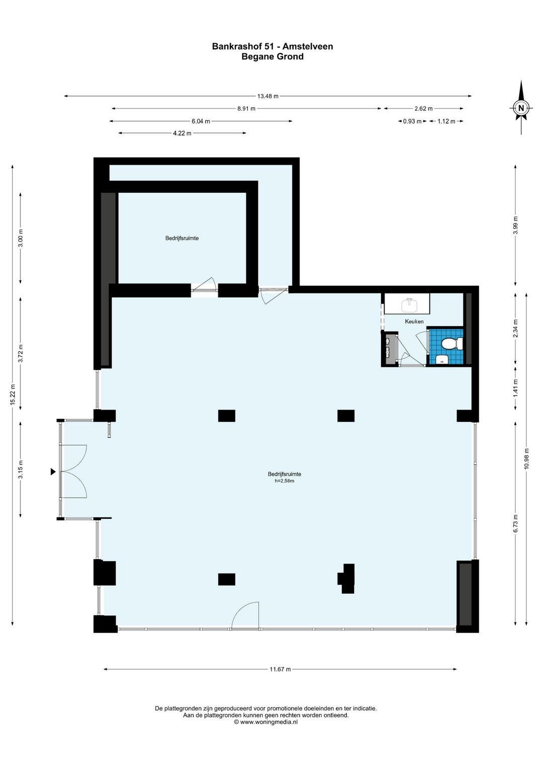 Aan het Bankrashof 51 te Amstelveen wordt een casco winkelruimte met een oppervlakte van circa 155 m² v.v.o. te koop aangeboden. De ruimte is gelegen op eigen grond en maakt onderdeel uit van een actieve Vereniging van Eigenaars.