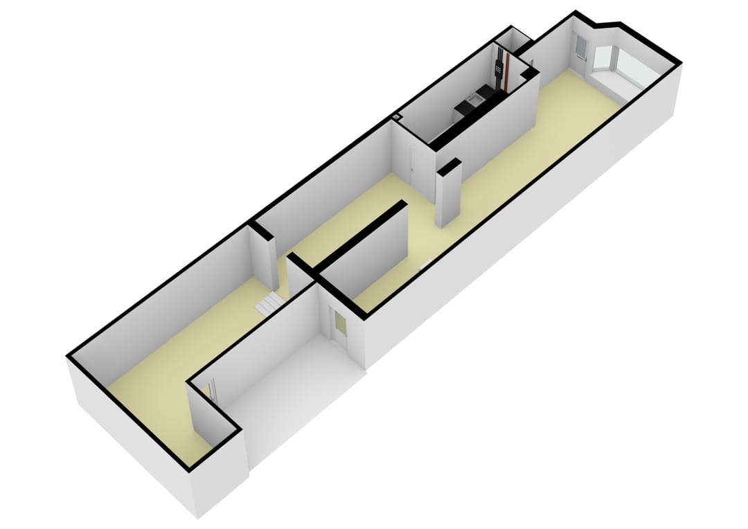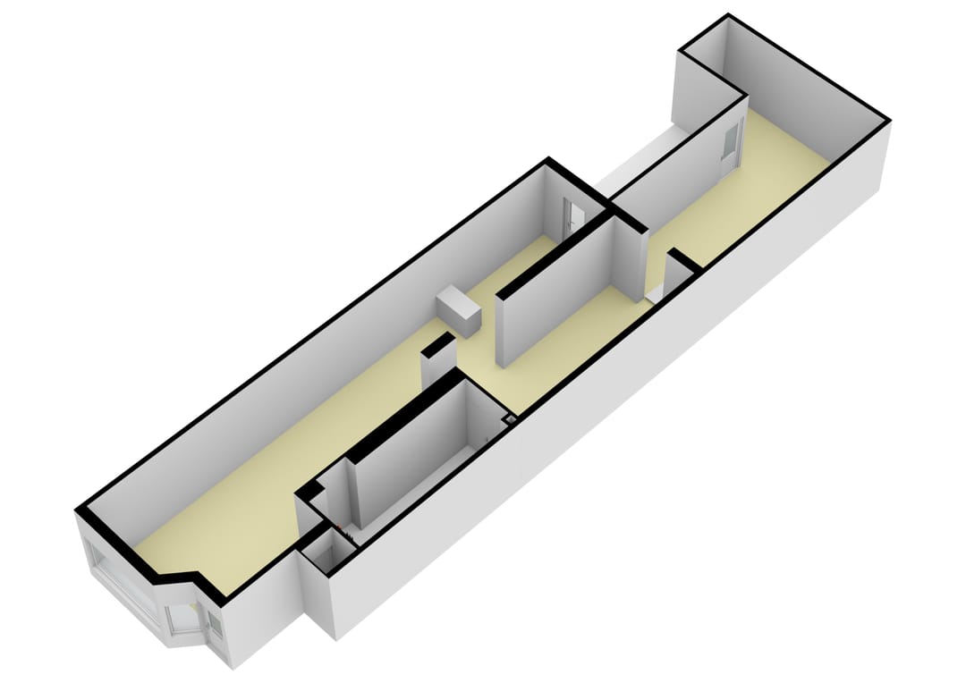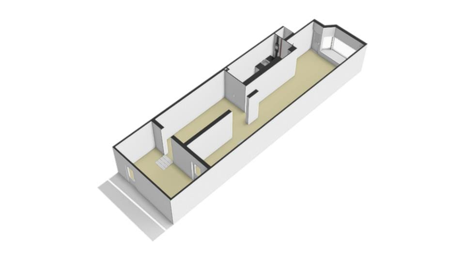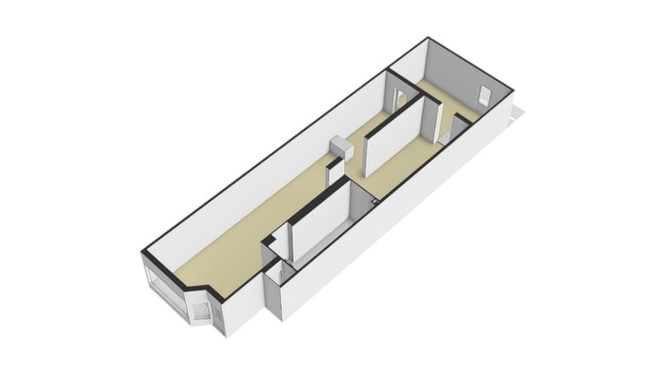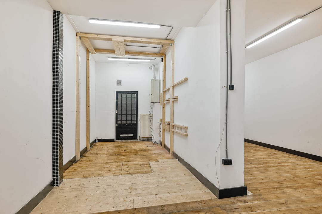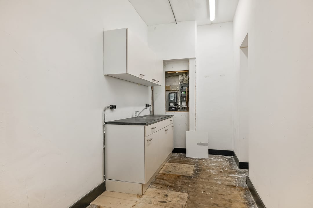 Empty and shell-like. The remainder of the building was recently renovated as part of the division in apartmentrights. Foundation code II was issued in 2025.