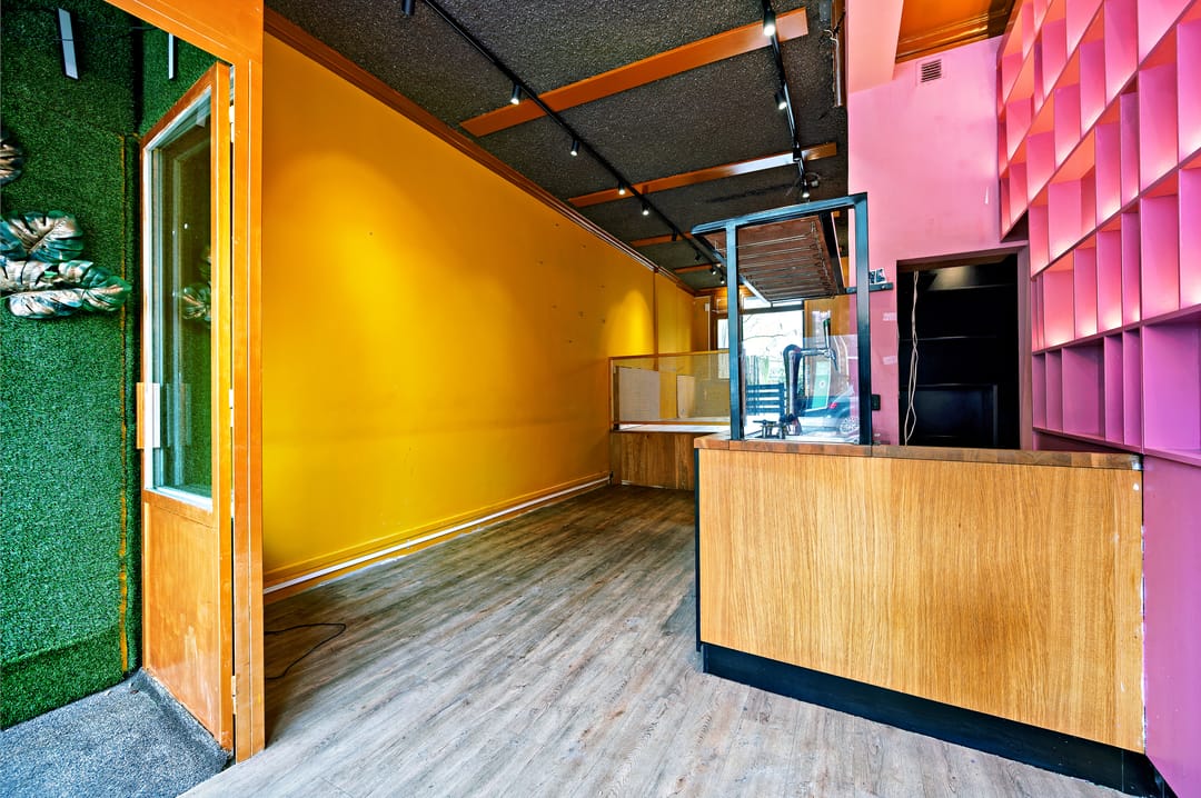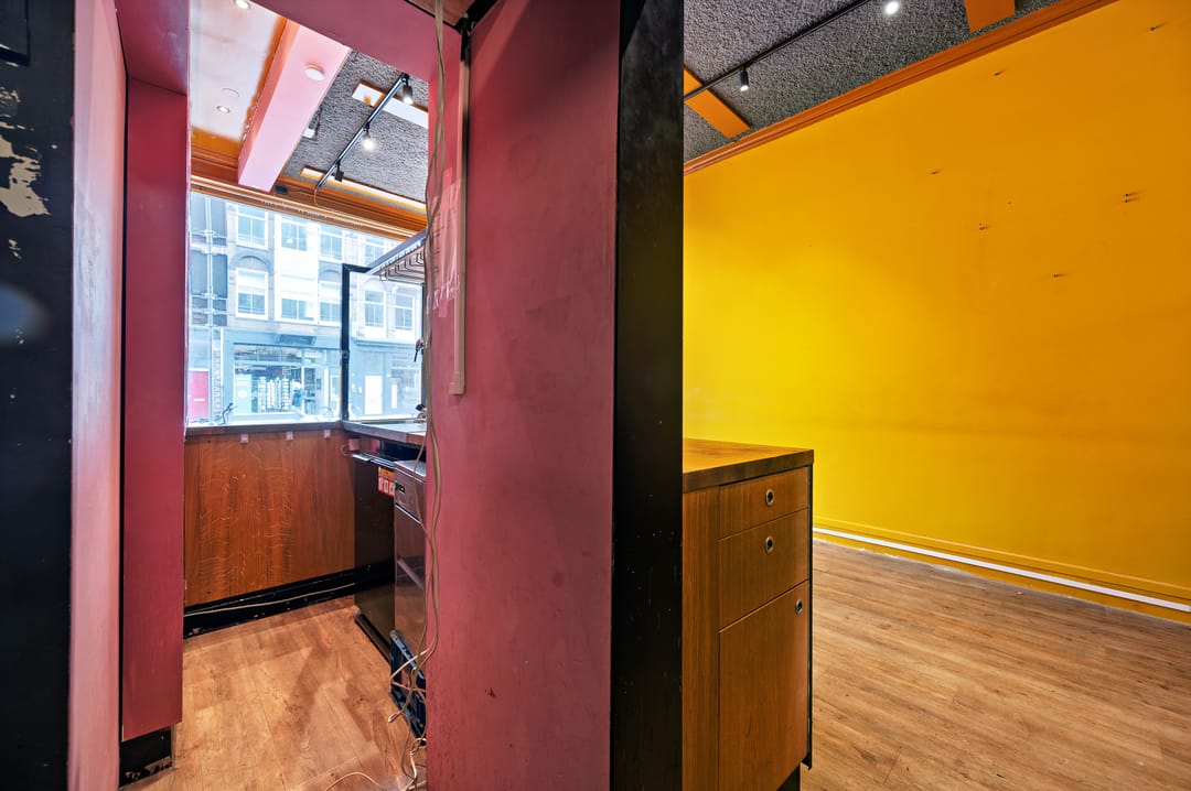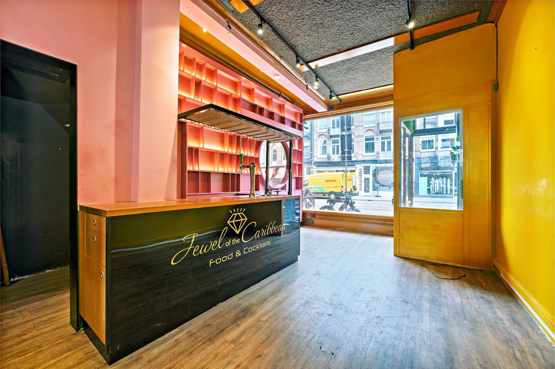 De winkel ligt op een steenworp van de Ceintuurbaan en door de diversiteit aan winkels is het ook druk gedeelte van de Van Woustraat. De ruimte kenmerkt zich de speelse indeling en door de raampartij aan de voor- en achterkant is het ook licht te noemen. De begane grond wordt halverwege opgedeeld in een split level niveau waarbij een natuurlijke splitsing ontstaat voor meer mogelijkheden in het gebruik.