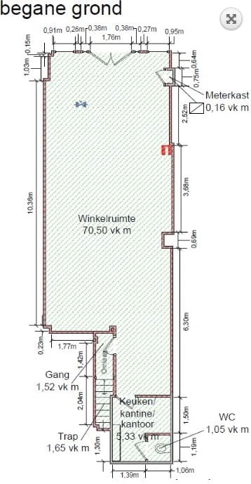 De winkel heeft een oppervlakte van ca. 80 m² en een frontbreedte van ca. 5 meter.