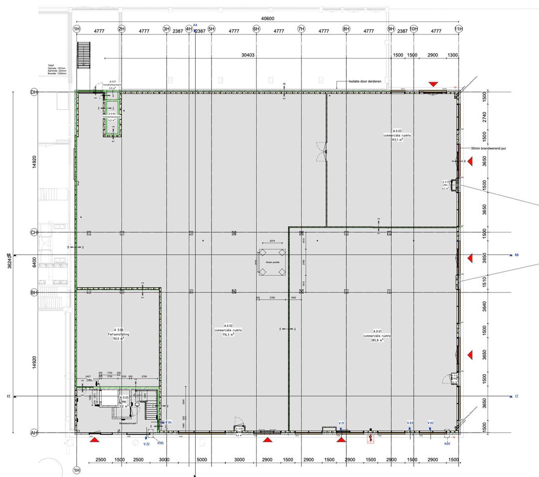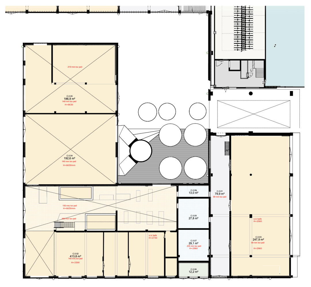 - Het Ketelhuis: Totaal ca. 1818 m2 BVO. Begane grond (ca. 1306 m2 BVO) en eerste verdieping (ca. 512 m2 BVO)