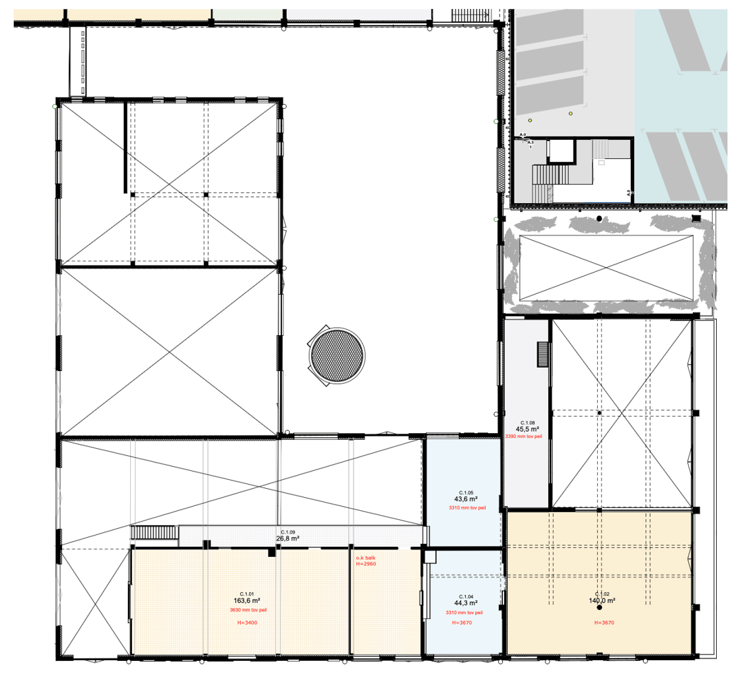 - Parkeerhub plint: ca. 1300 m² BVO