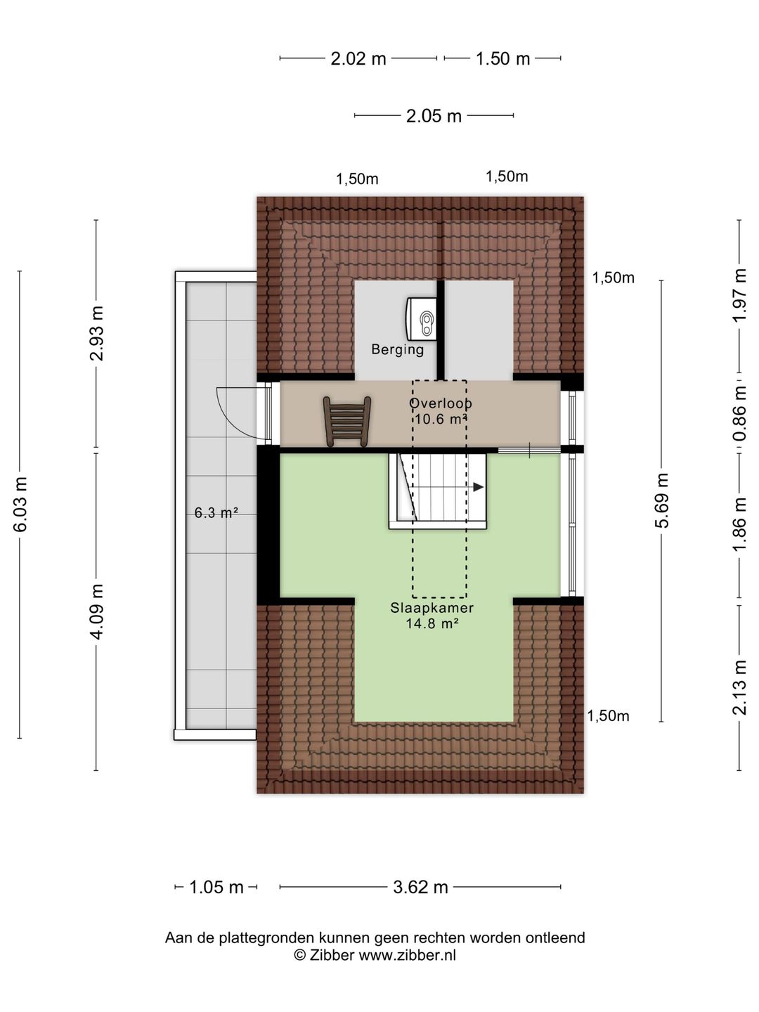 Op de derde verdieping vindt u een overloop, een derde slaapkamer en een ruimte voor berging en technische installaties. Vanuit deze verdieping is het dakterras bereikbaar.