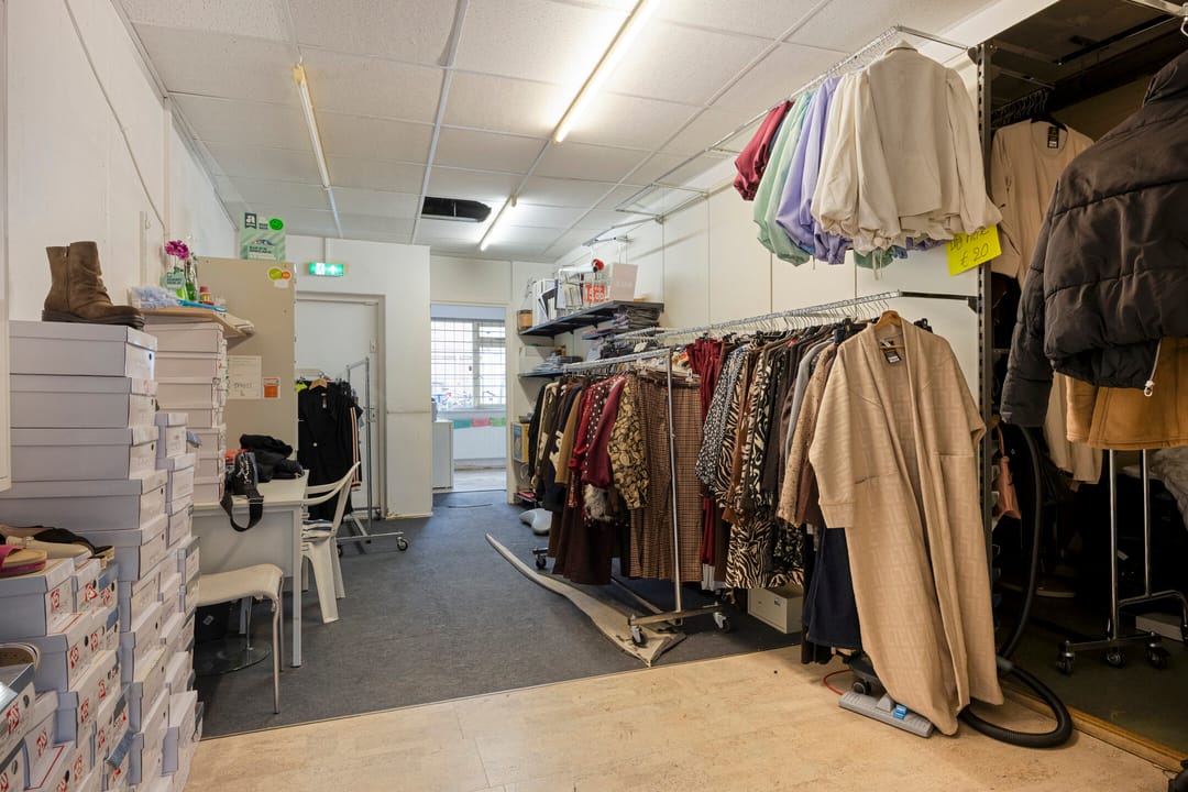 Aan de achterzijde is er een magazijn, een pantry en een toilet gesitueerd.