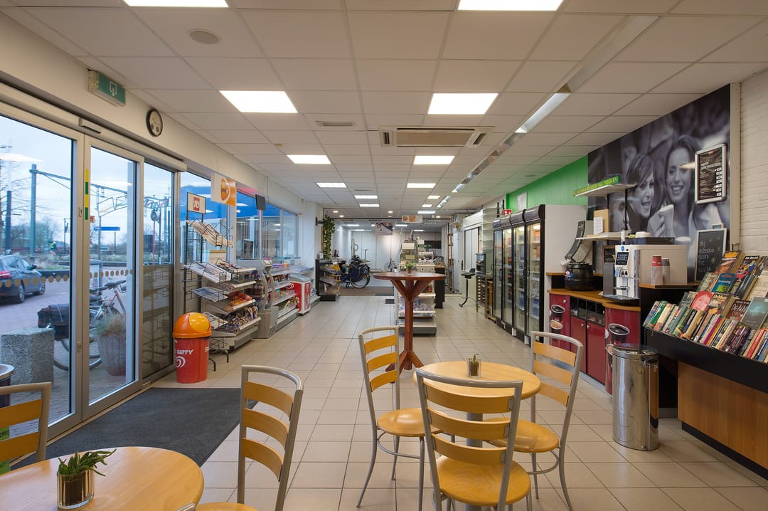 Op een drukke locatie gelegen winkelruimte/bedrijfsruimte. Direct naast het NS-en busstation van Beilen.