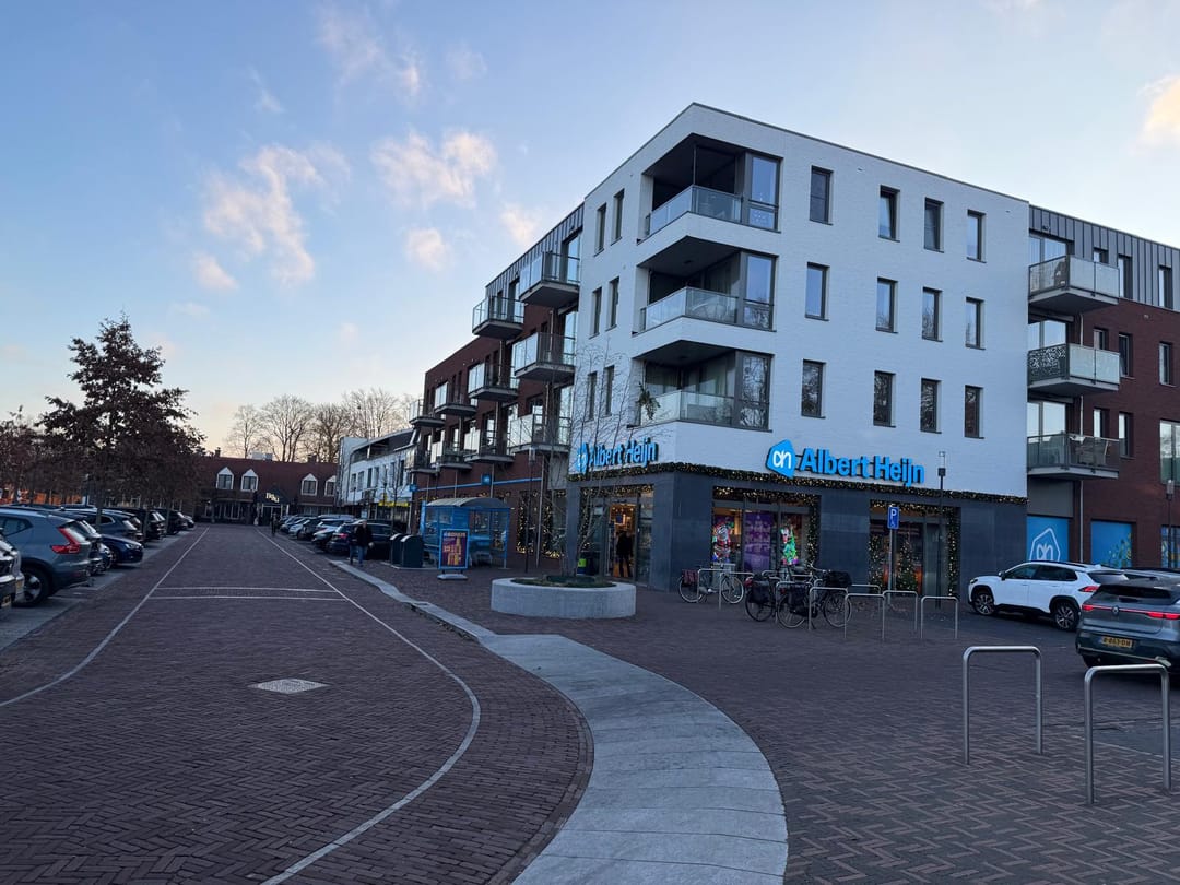 Direct voor de winkel is een aantal langsparkeerplaatsen aanwezig. De grote gratis parkeerplaatsen zijn voor de AH en Jumbo supermarkt gesitueerd en deze worden gereguleerd door een blauwe zone.