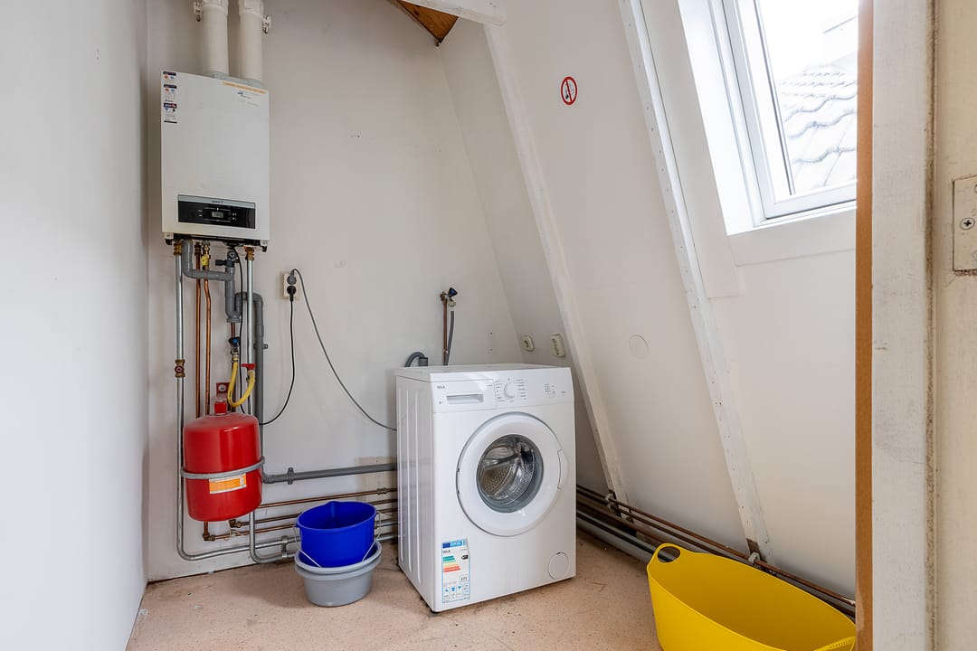 2e verdieping: overloop met vaste kasten, 3e en 4e slaapkamer voorzien van dakkapellen, aparte ruimte met aansluiting wasmachine/droger en opstelling c.v.-combiketel
