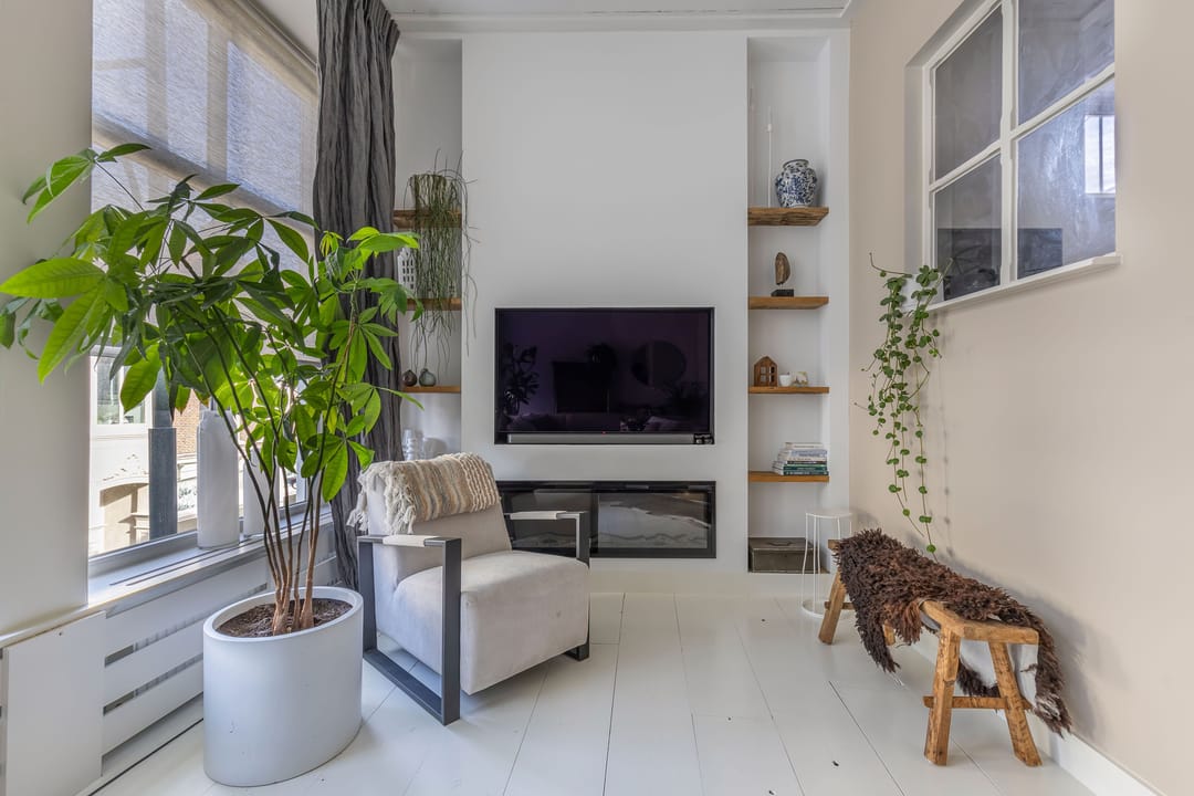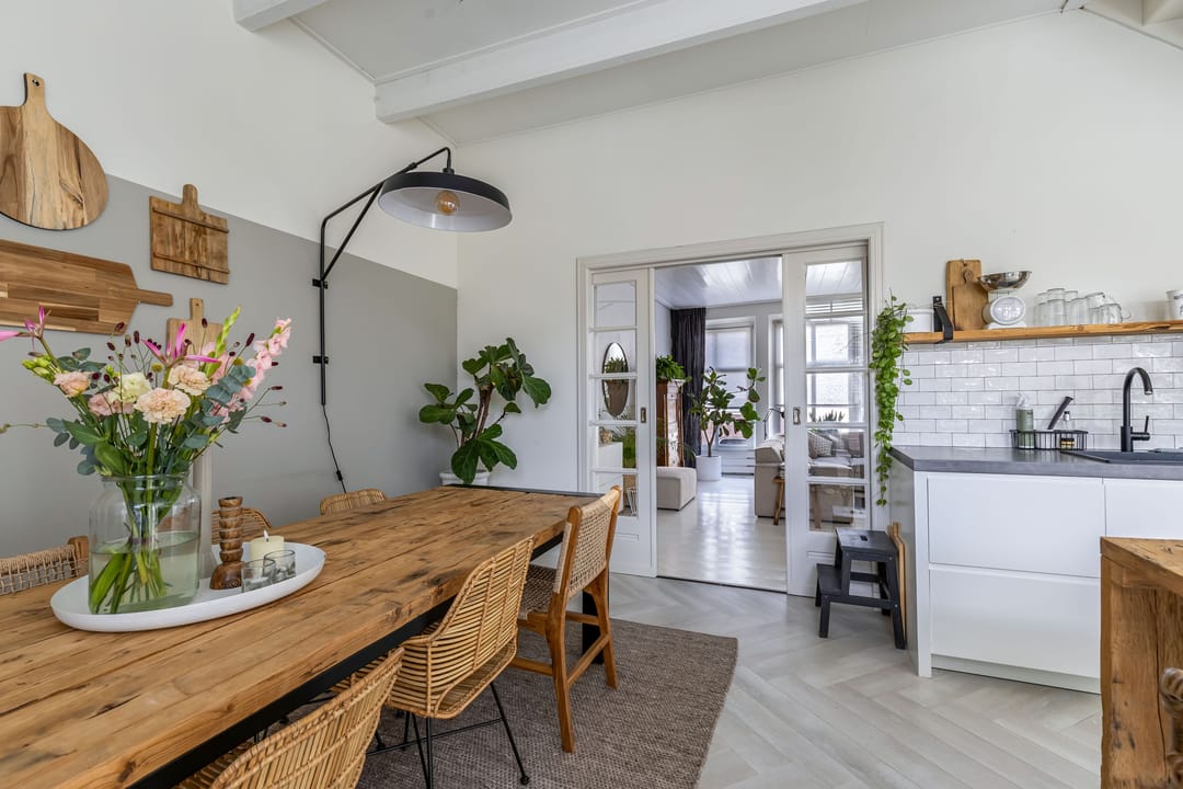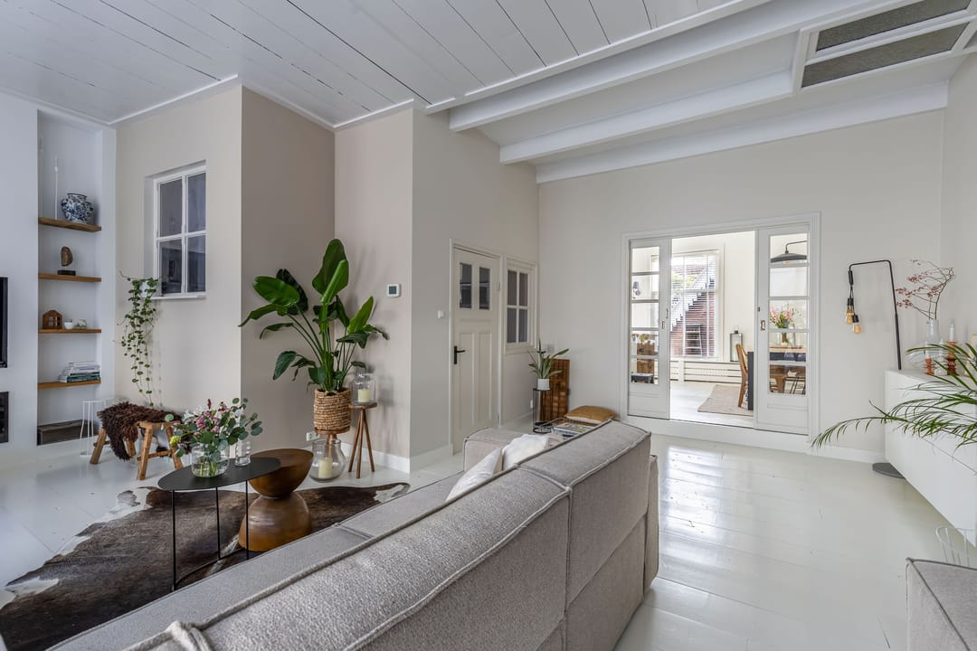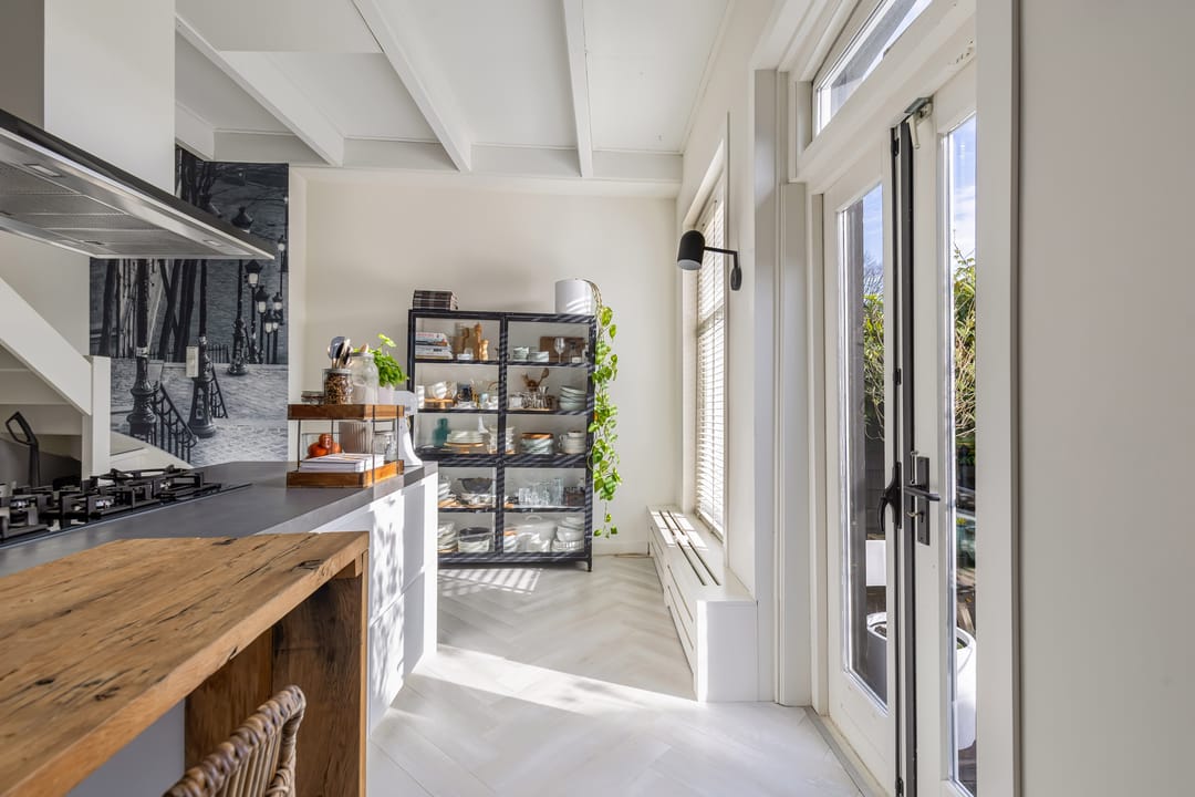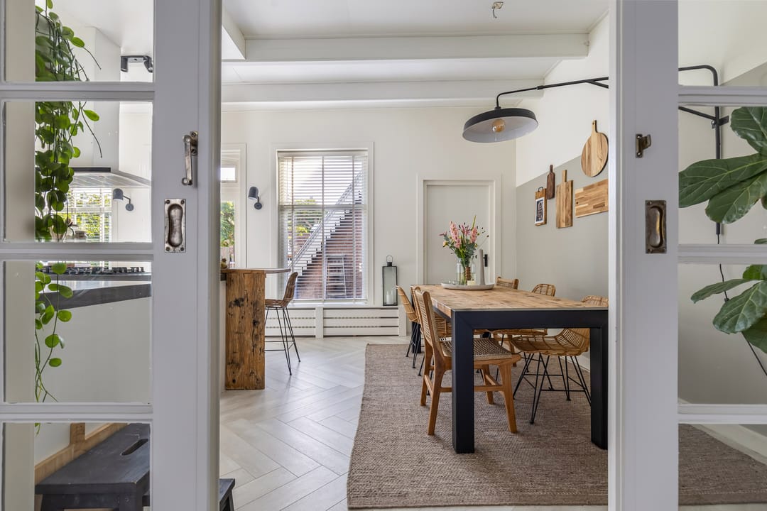 De entree van de woning bevindt zich naast de winkel. Via de lichte hal met trapopgang kom je op de eerste verdieping, waar direct de warme sfeer je tegemoetkomt.