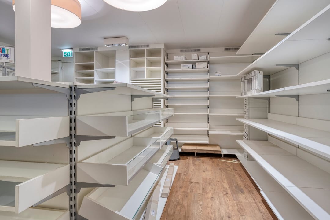 In het souterrain een deel winkel, kantoor en een deel berging. Deur naar de achterplaats. De ruimten zijn voorzien van systeemplafonds en camera’s.