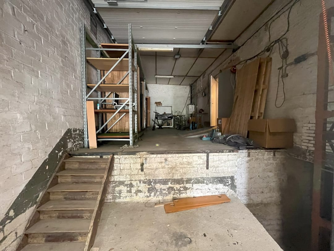 Aansluitend een ruime bedrijfsruimte (ca. 110 m²), geschikt als werkplaats, showroom of opslag.