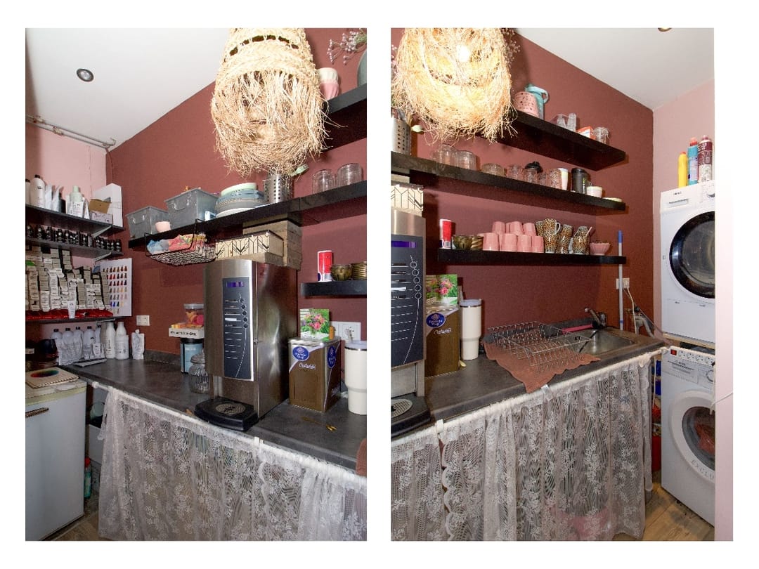 De winkelruimte is overzichtelijk van indeling en heeft een prettige diepte van bijna 10 meter. De grote raampartijen aan de voorzijde zorgen voor veel lichtinval, wat de ruimte een open en uitnodigend karakter geeft. Aan de achterzijde bevindt zich de keukenopstelling met spoelbak en werkruimte, en daarnaast een separaat toilet met fonteintje.